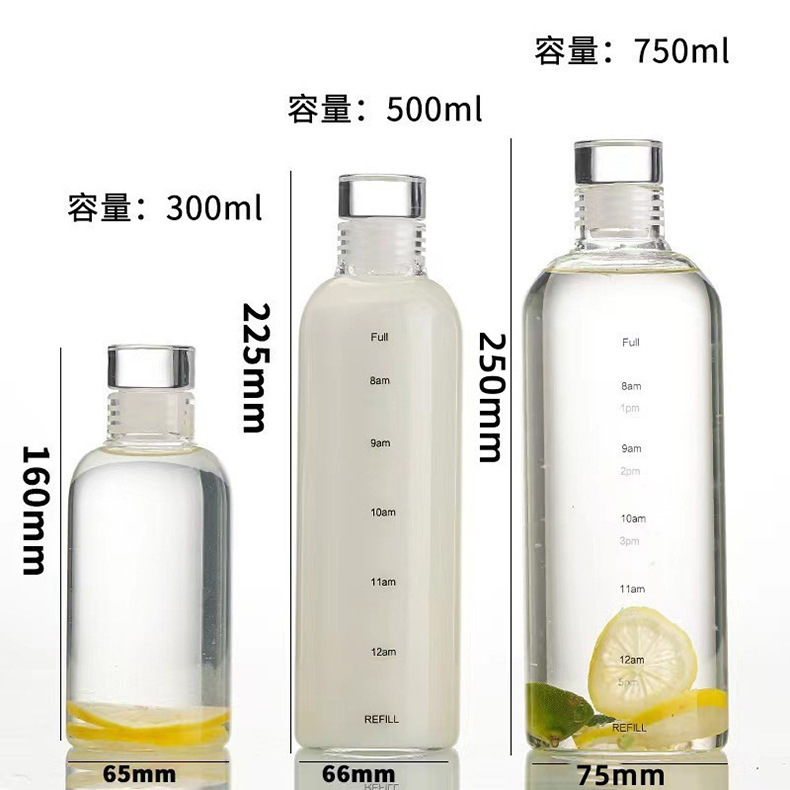 Gelas skala waktu borosilikat tinggi, gelas air kaca modern sederhana untuk wanita, nilai estetika tinggi, tahan suhu tinggi, gelas olahraga portabel.
