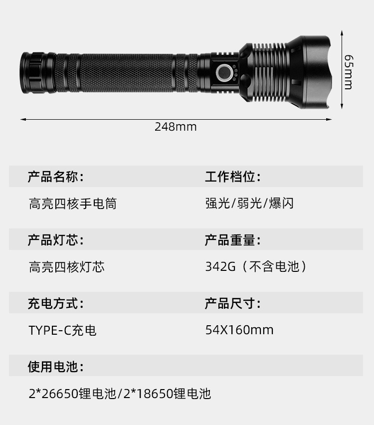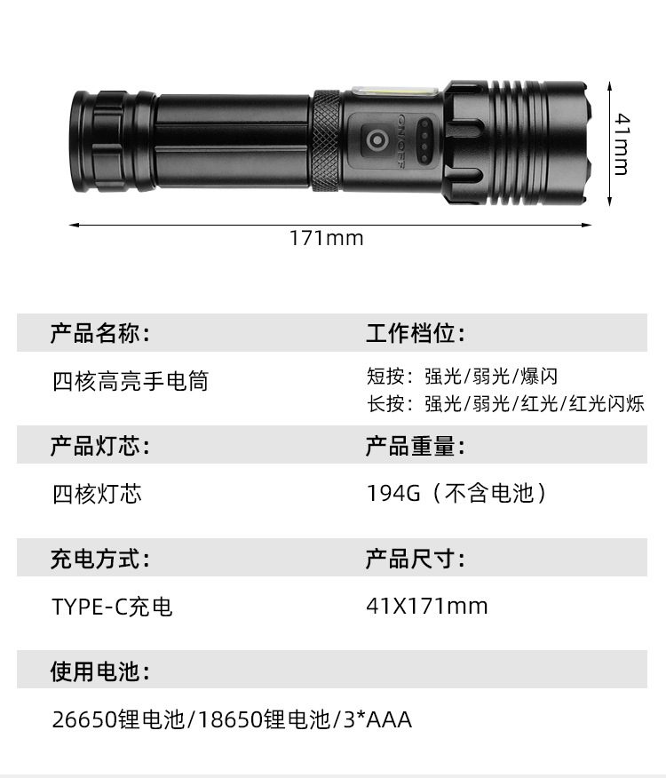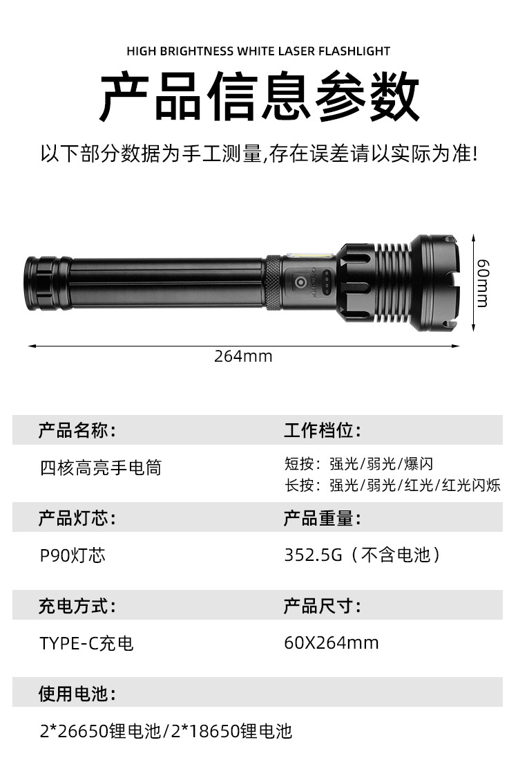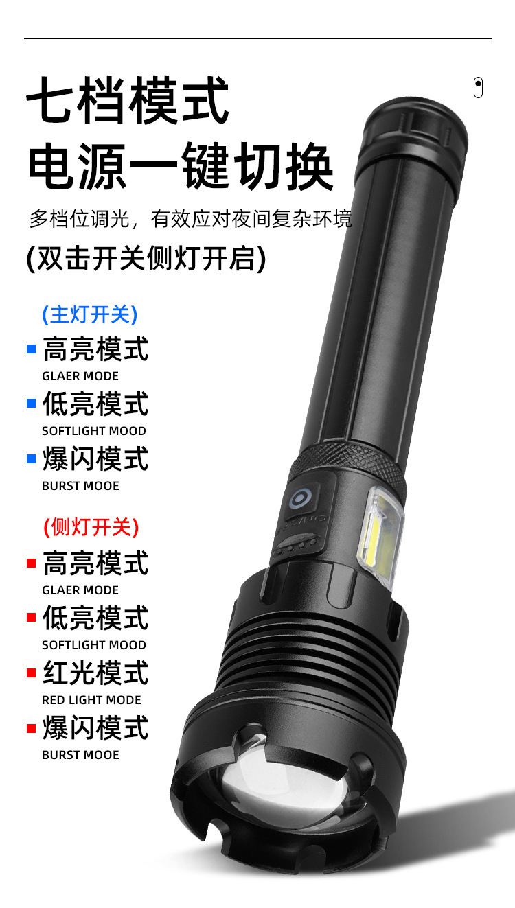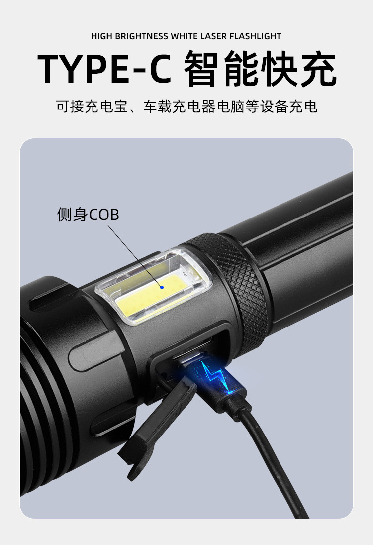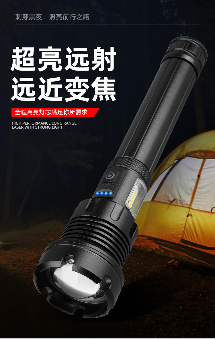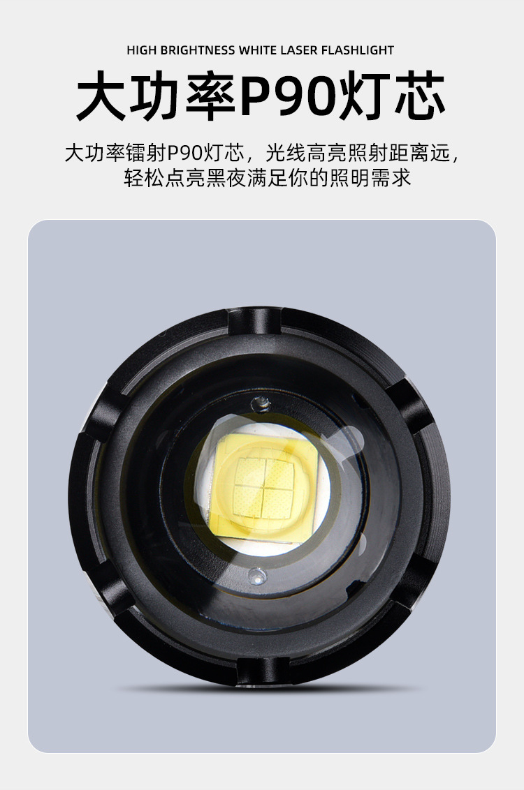 Penjualan Langsung Pabrik Senter Cahaya Kuat Jarak Jauh P90 Senter Cahaya Kuat Pengisian Daya USB Senter Fokus Tetap Luar Ruangan Kecerahan Tinggi Genggam Berkemah