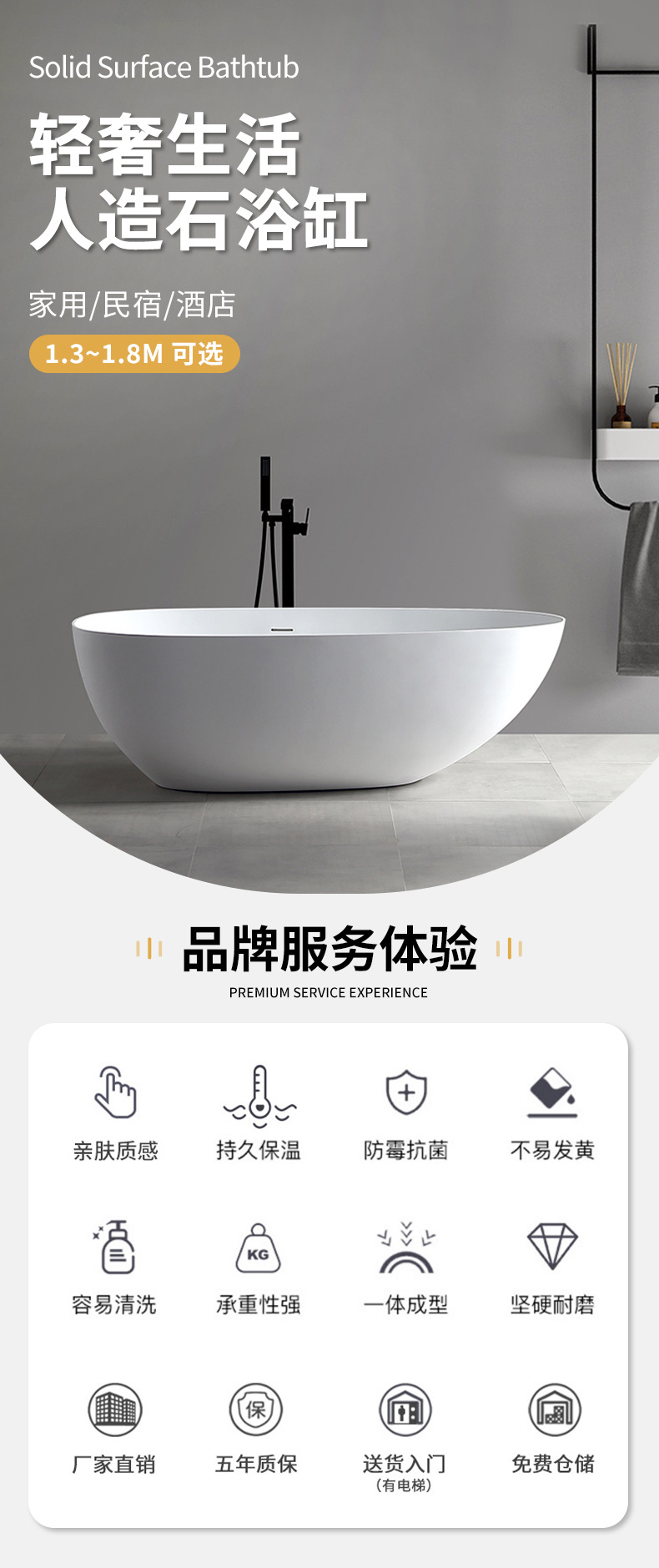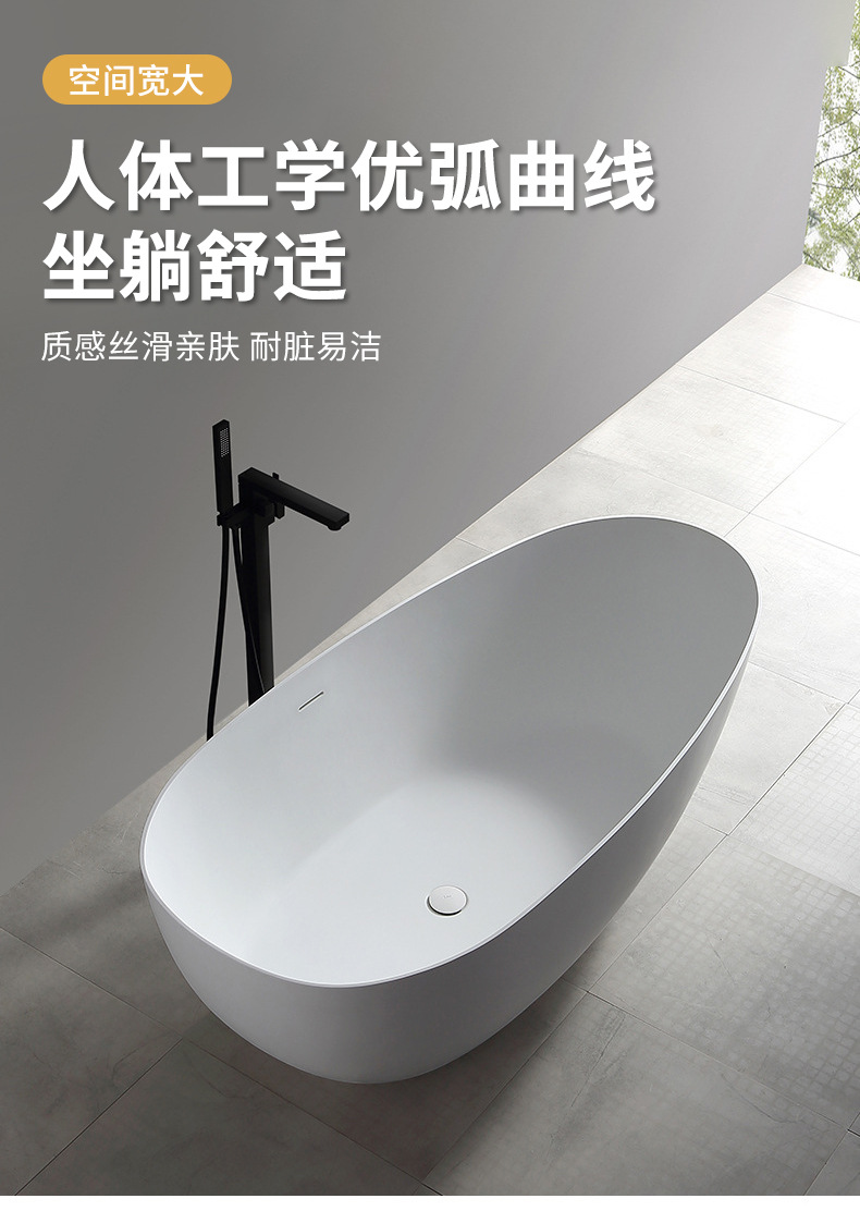 Bak mandi batu buatan untuk penggunaan di rumah, apartemen kecil, berdiri sendiri, berbentuk oval, hotel dan rumah tamu, bak mandi mewah ringan, pabrik perdagangan luar negeri lintas batas