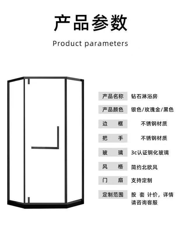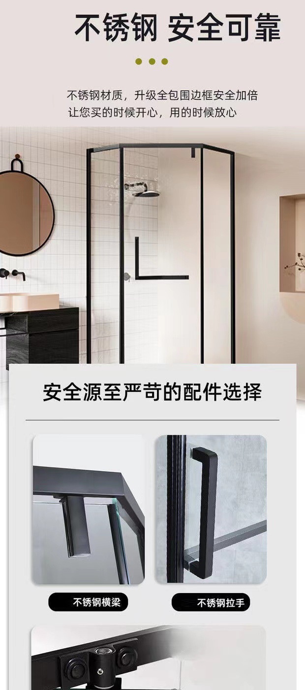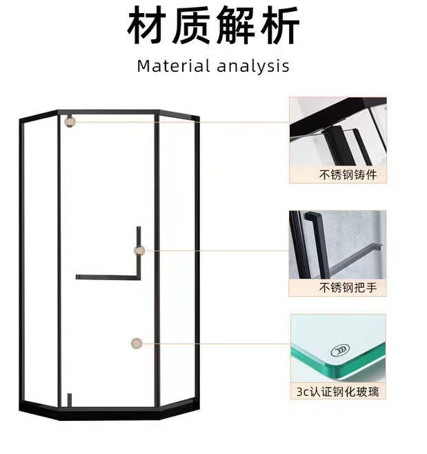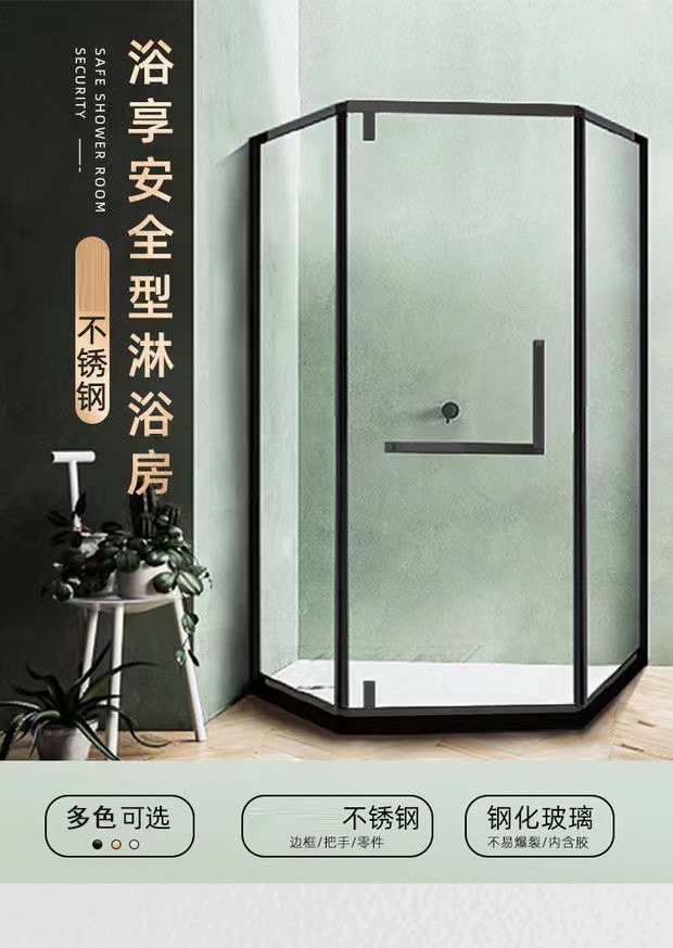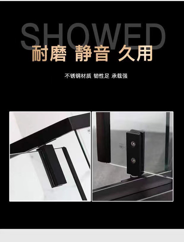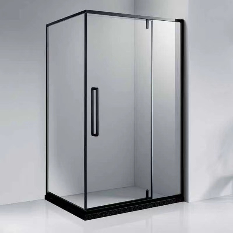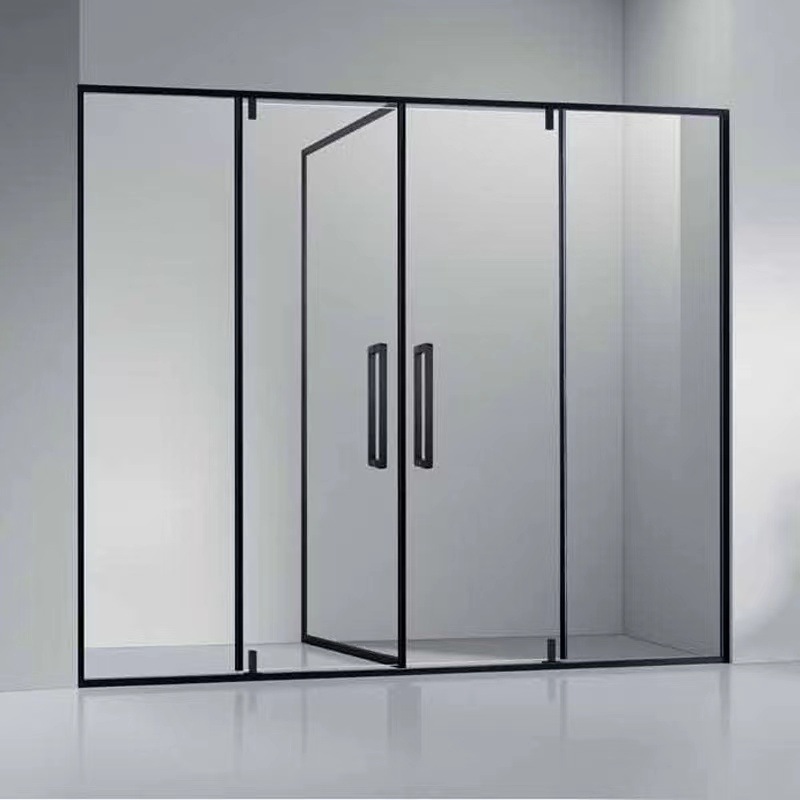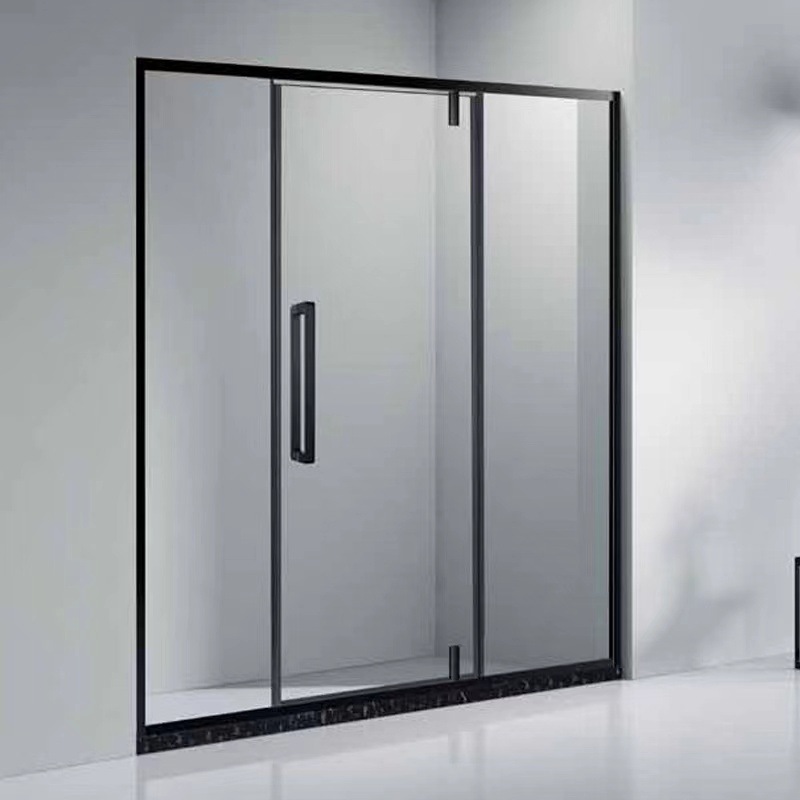 Pintu kamar mandi baja tahan karat berbentuk T dengan kaca tempered hitam, pintu geser untuk ruang shower, gaya mewah ringan.