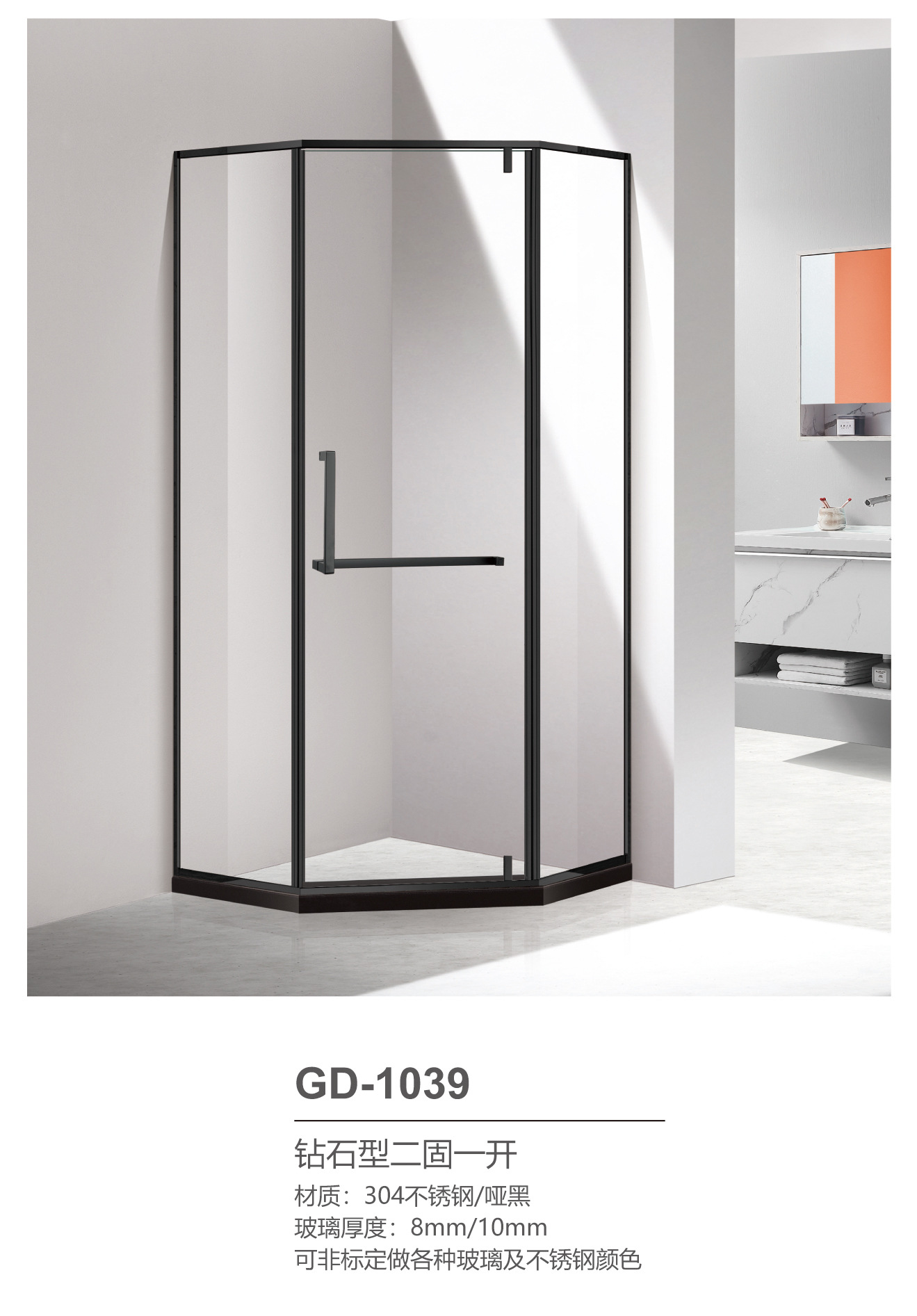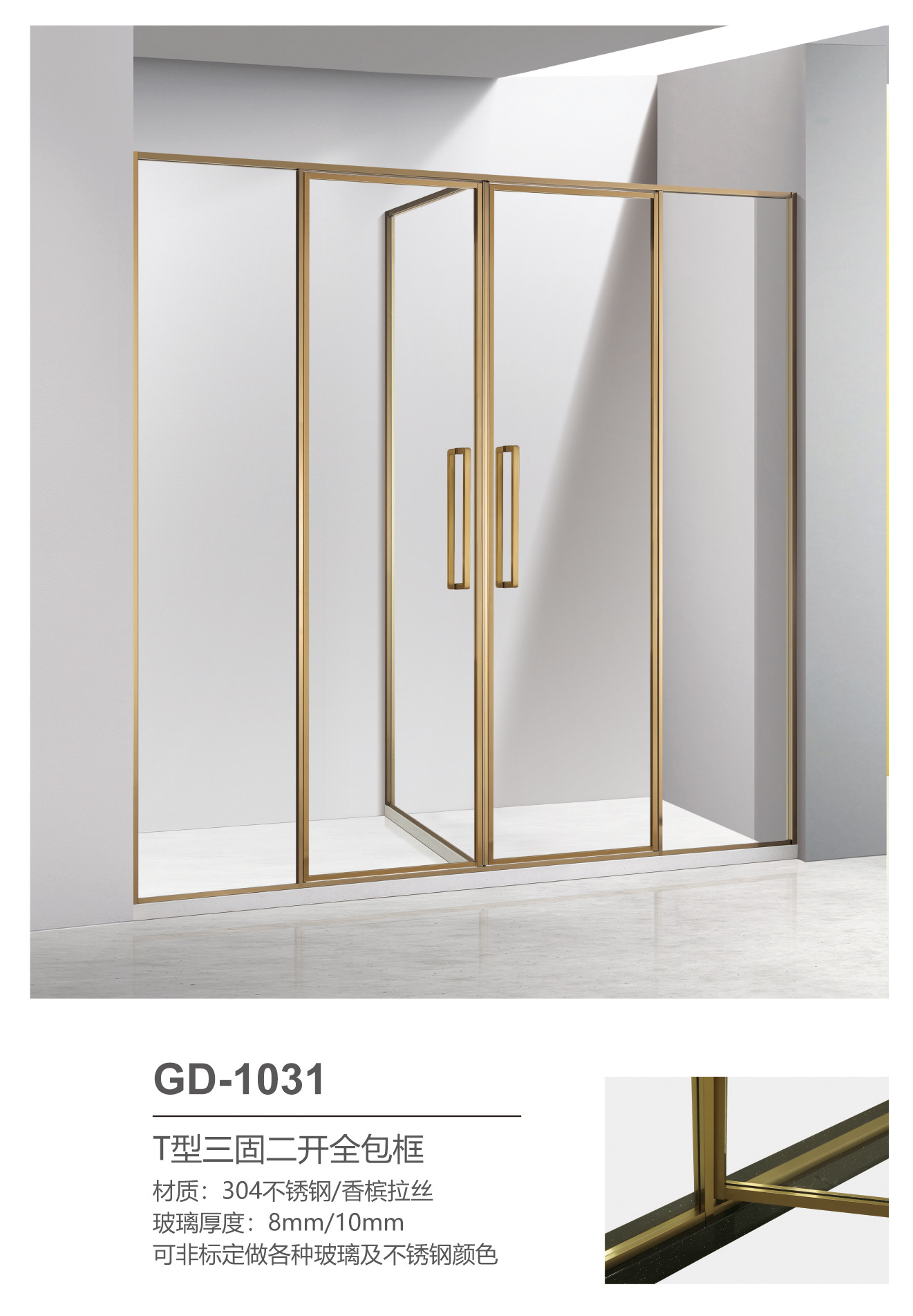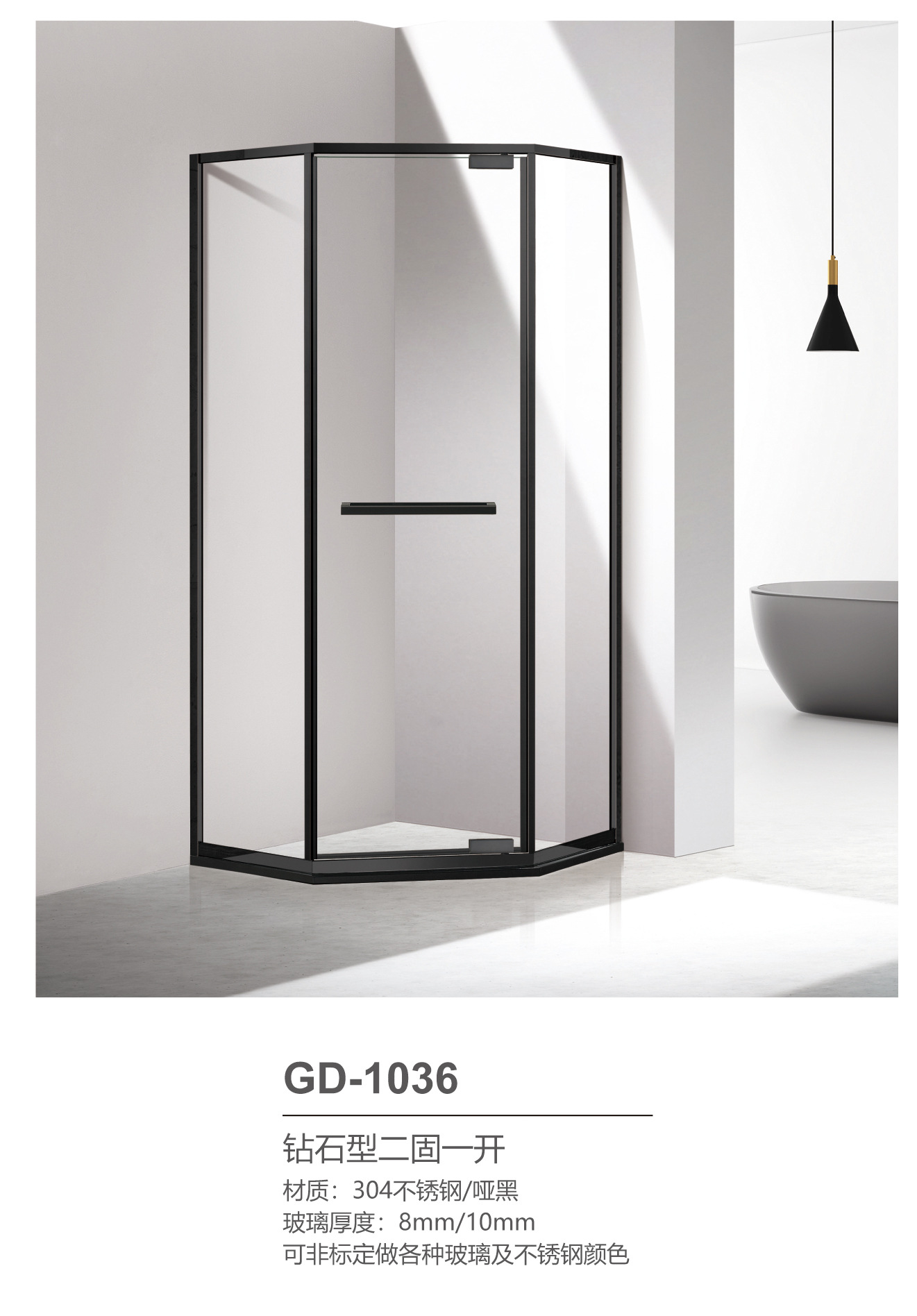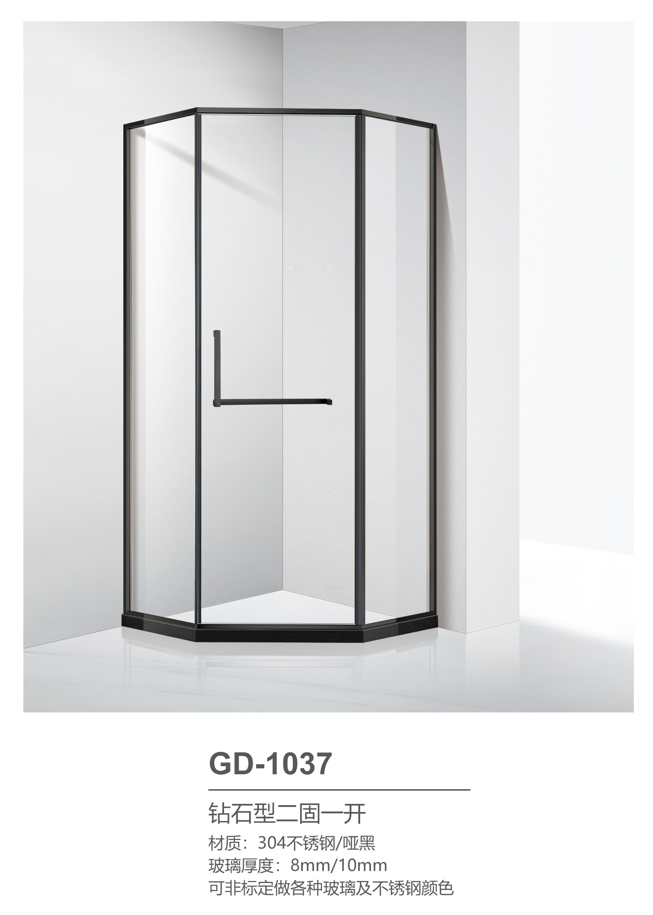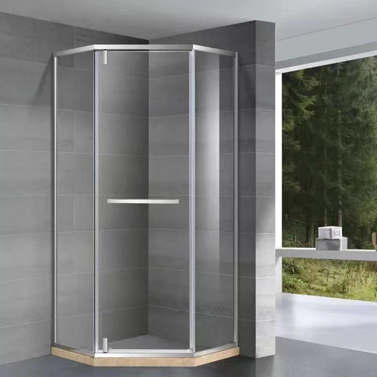 Pintu kamar mandi baja tahan karat berbentuk T dengan kaca tempered hitam, pintu geser untuk ruang shower, gaya mewah ringan.