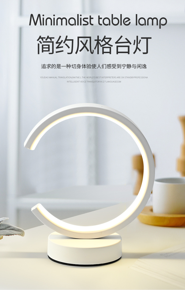 Lampu meja Usb rumah tangga, sederhana modern kreatif Led bulat lampu belajar hotel samping tempat tidur kamar tidur ruang tamu lampu dapat diredupkan
