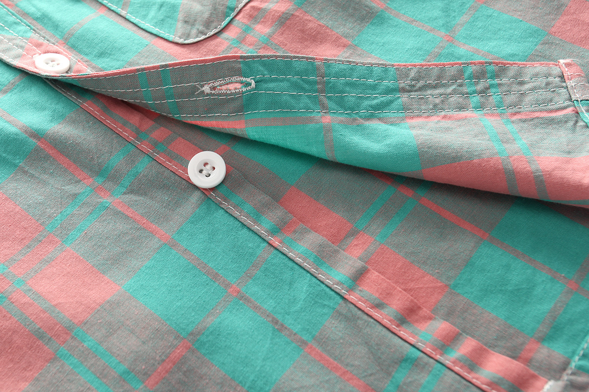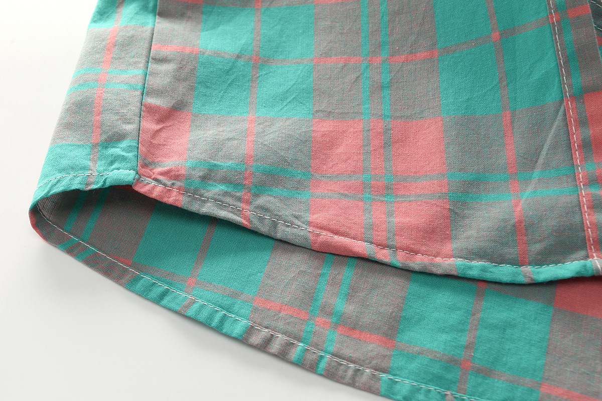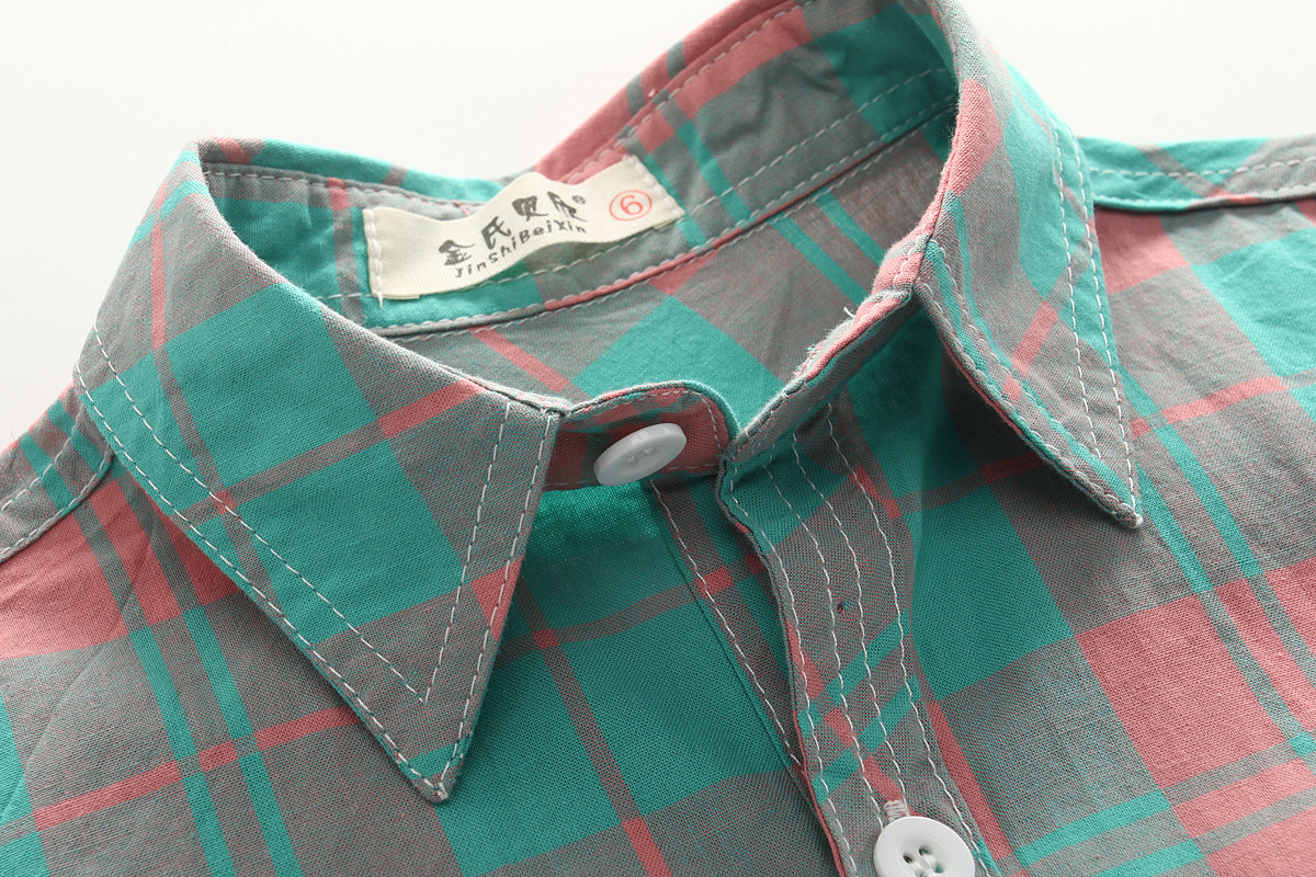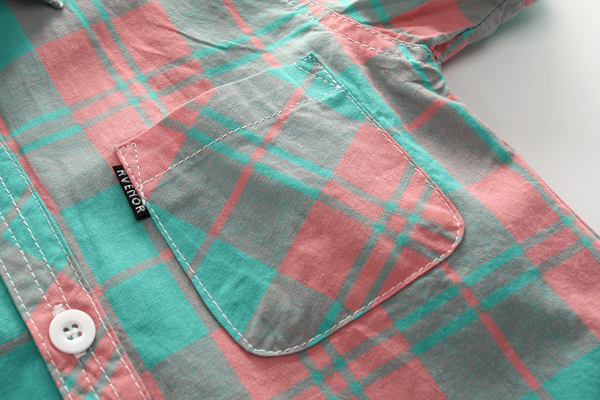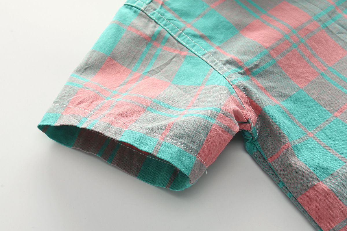 Kemeja Lengan Pendek Anak Laki-laki Pakaian Katun Murni Anak Sedang Besar Atasan Anak Perempuan Kemeja Kotak-Kotak Anak Perempuan Kemeja Lengan Setengah Panjang