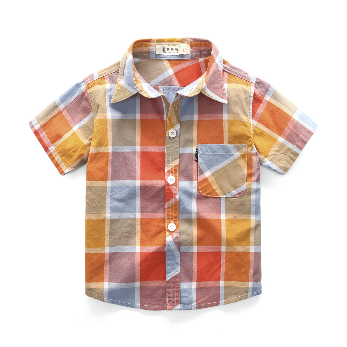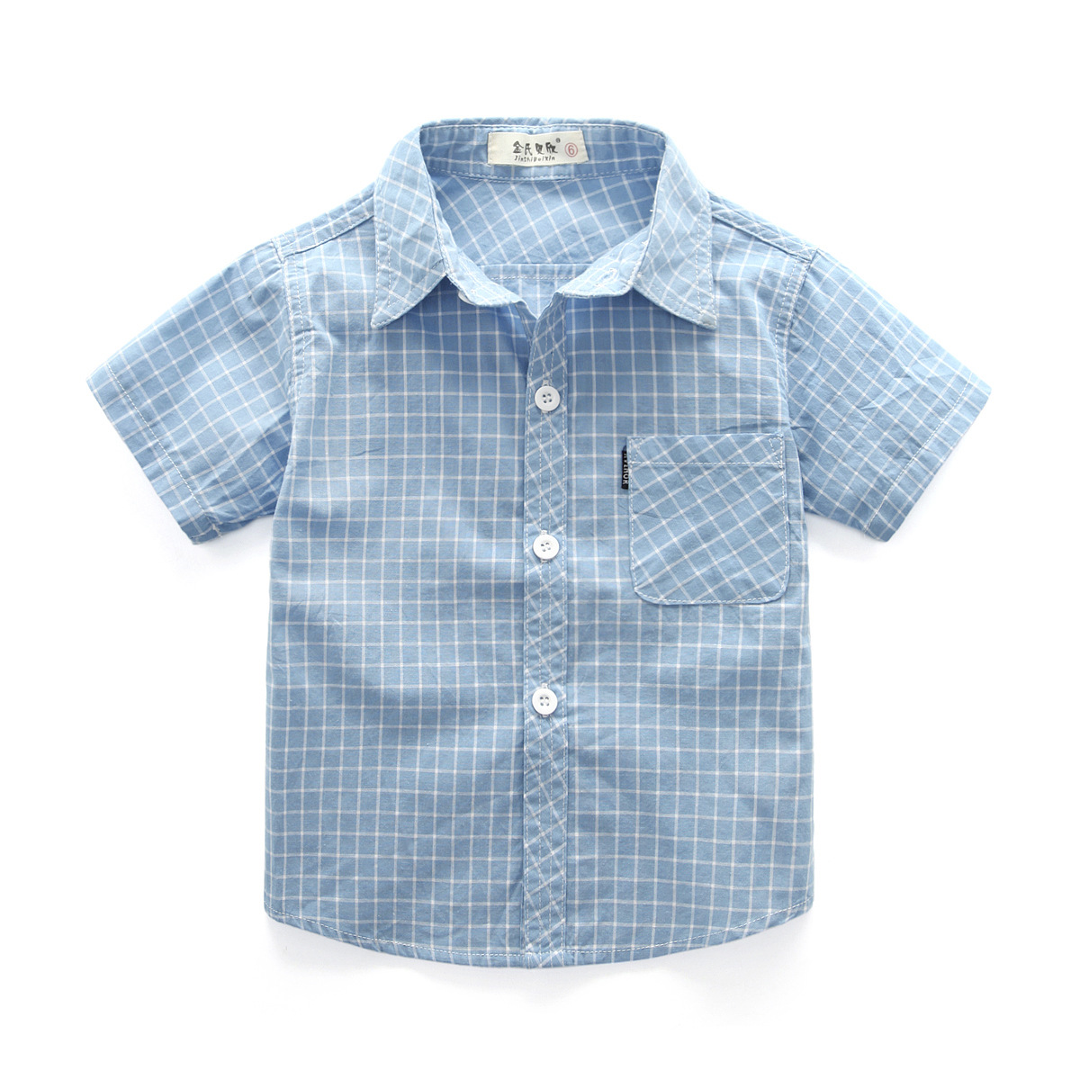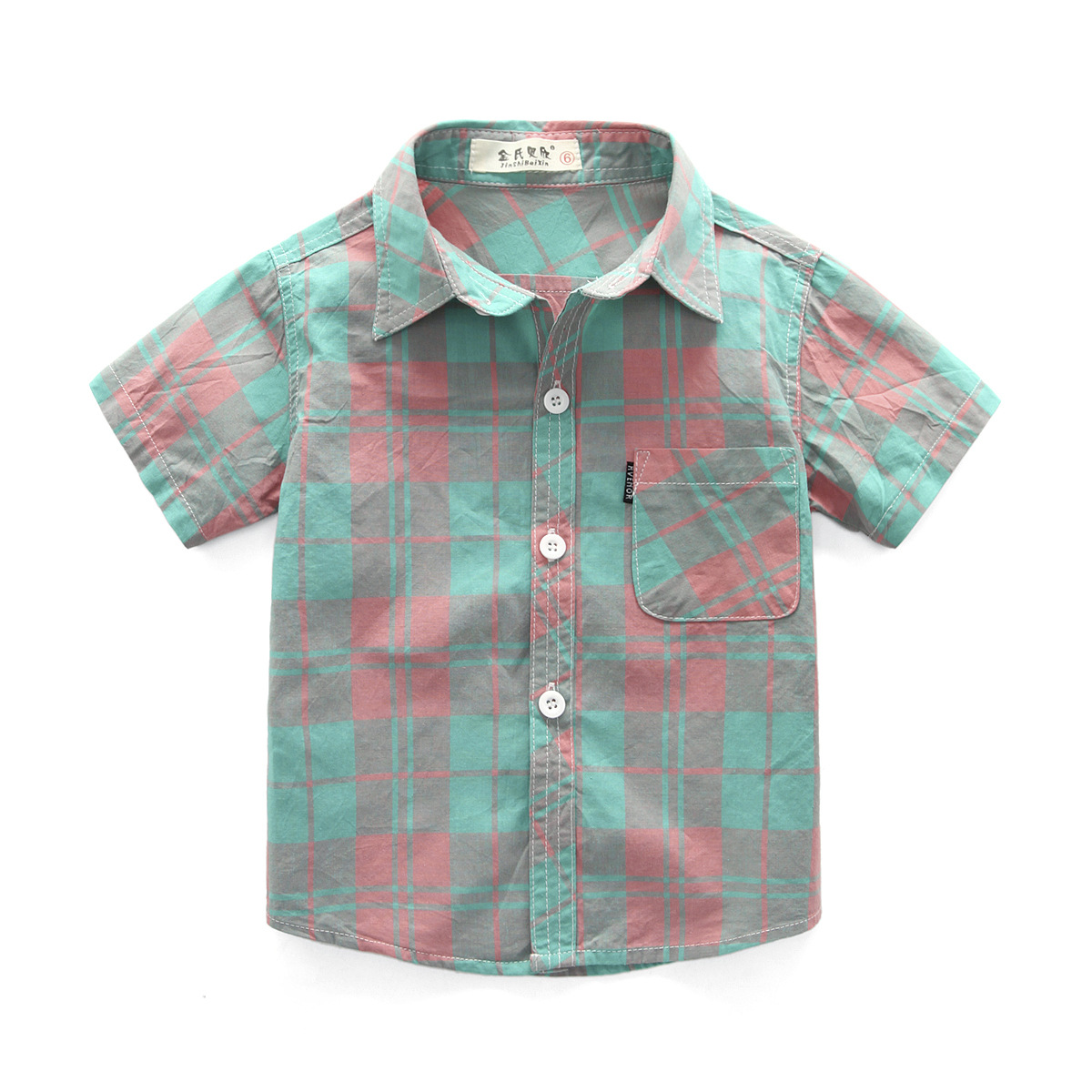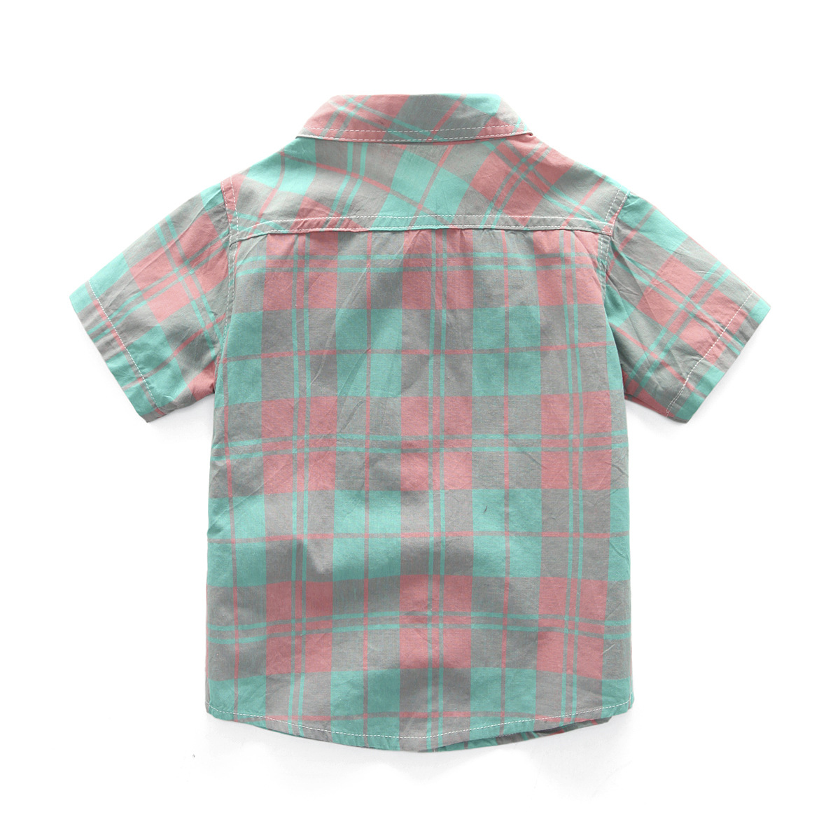 Kemeja Lengan Pendek Anak Laki-laki Pakaian Katun Murni Anak Sedang Besar Atasan Anak Perempuan Kemeja Kotak-Kotak Anak Perempuan Kemeja Lengan Setengah Panjang