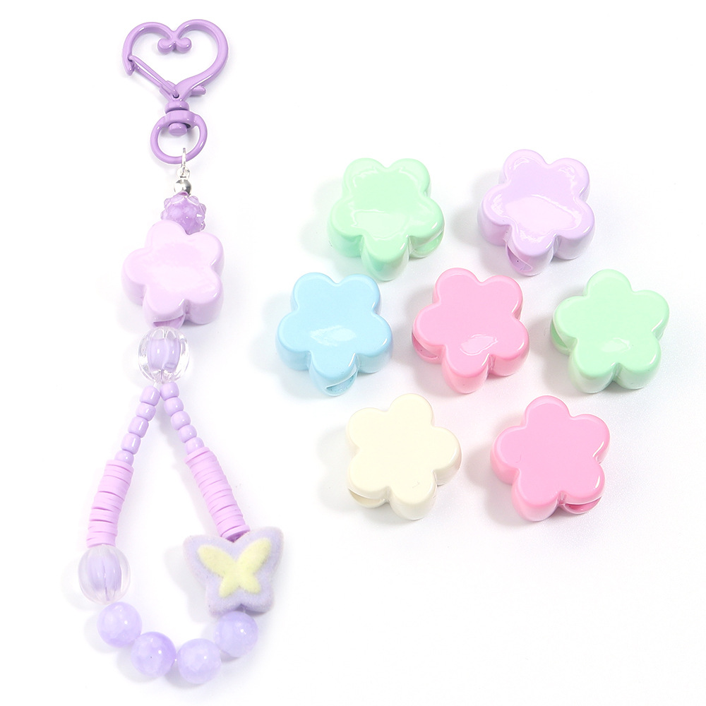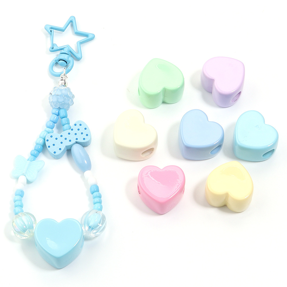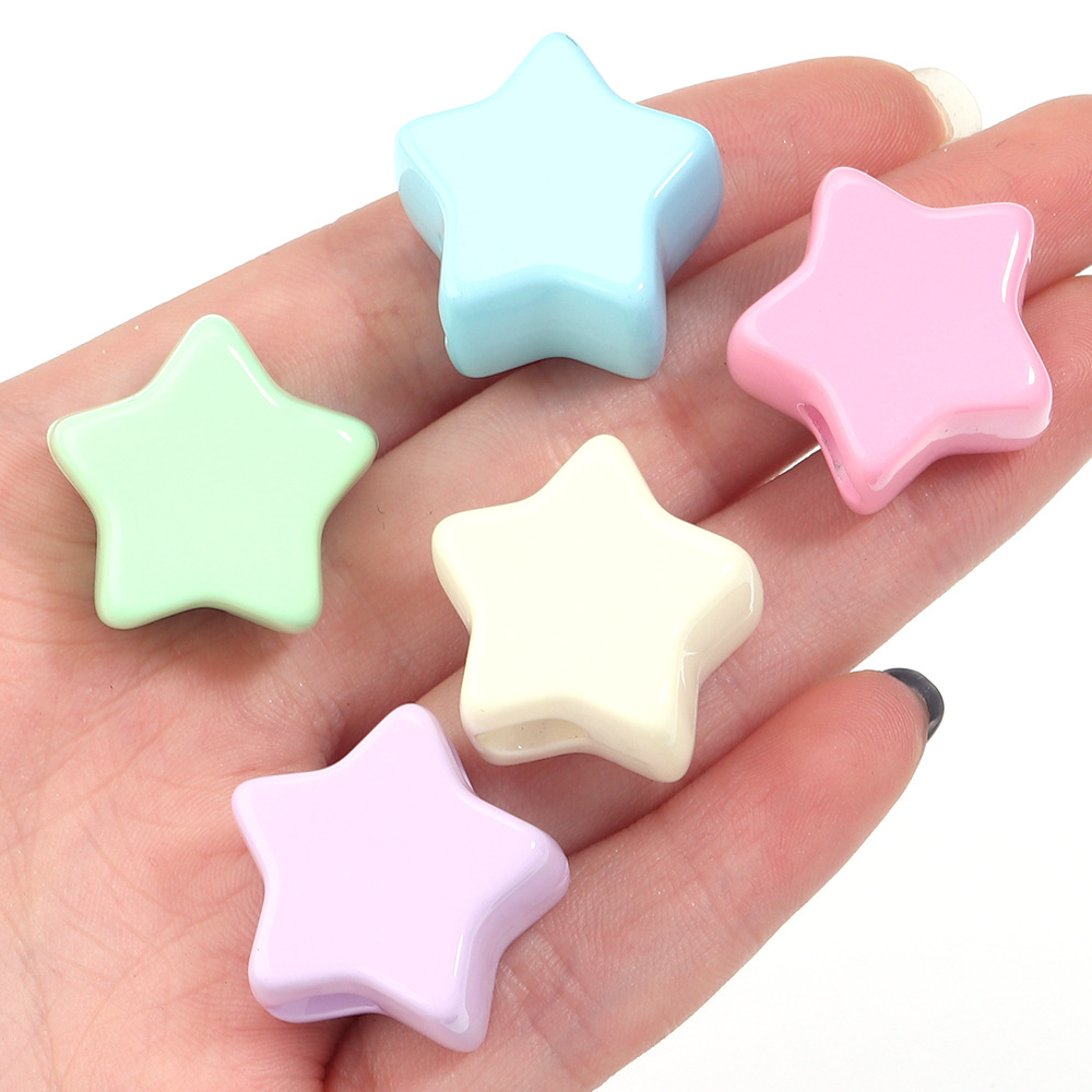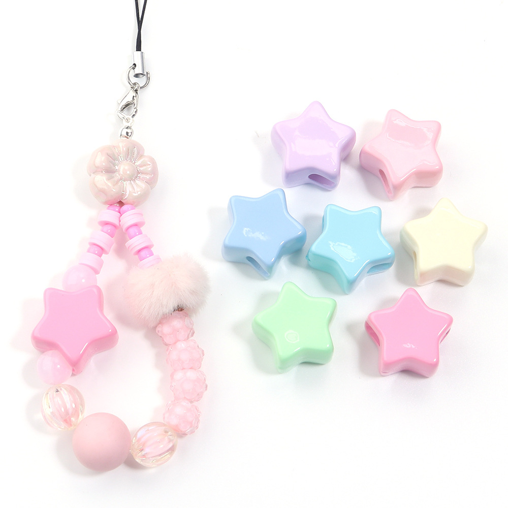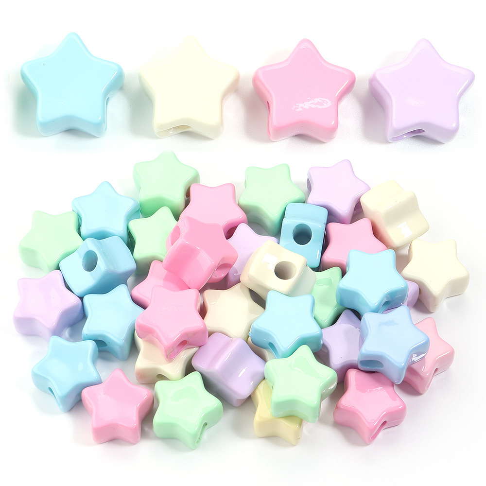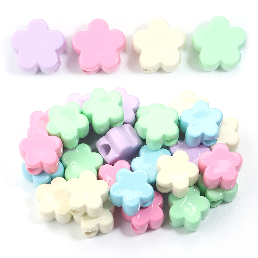 Acrylik Manik-manik Warna Solid Macaron Lucu Bunga Cinta Hati Bintang Lima Sudut Manik-manik Diy Lucu Gelang Aksesoris Perhiasan