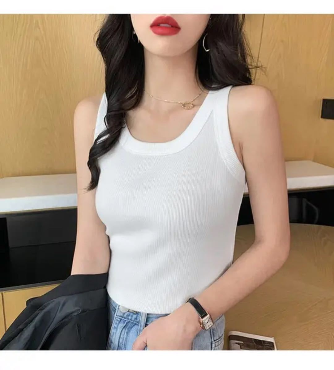 Kaus Dalaman wanita, dalaman pakaian luar ramping gaya Korea sling lengan pendek musim panas 2024