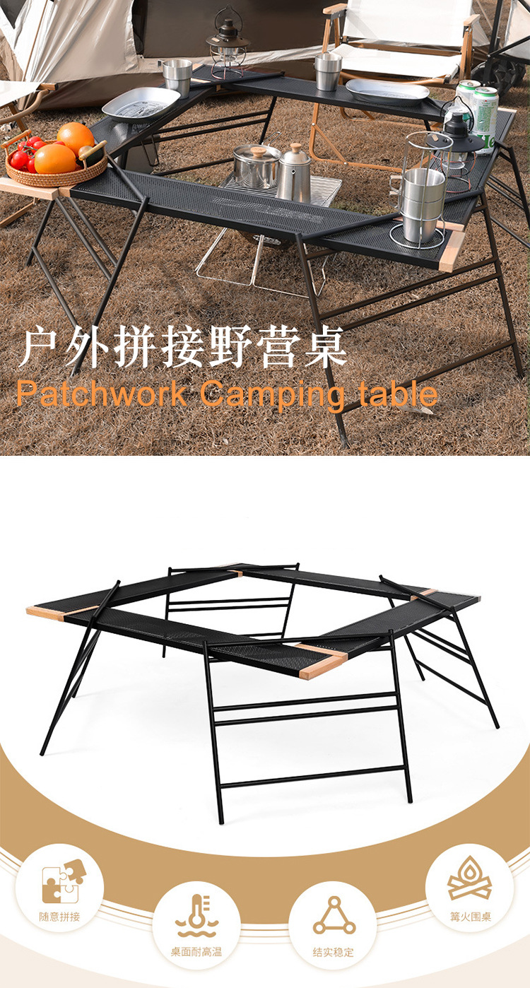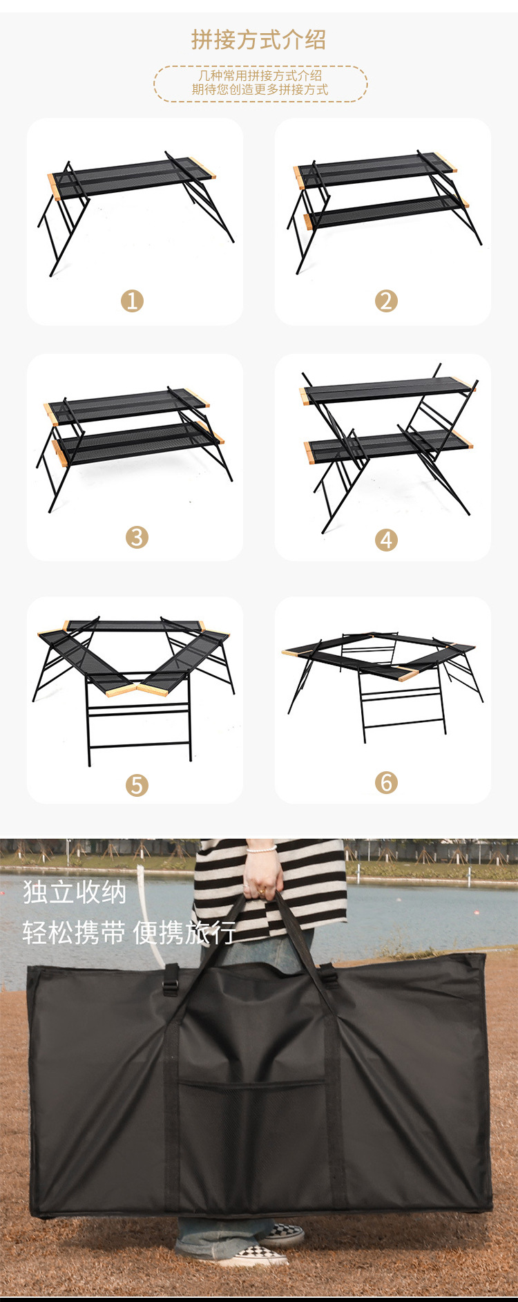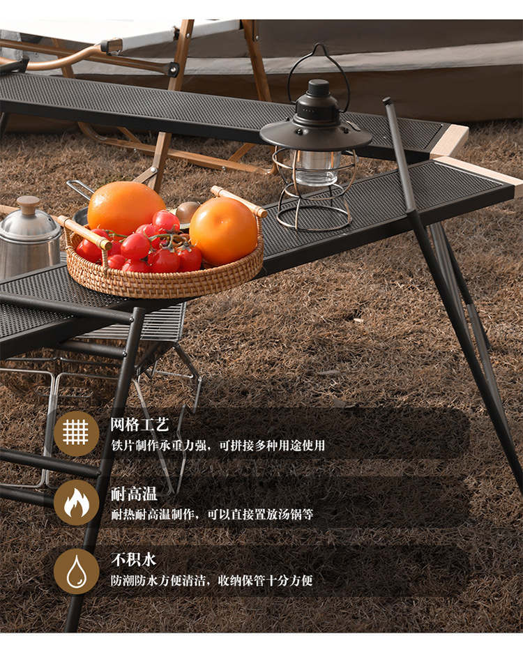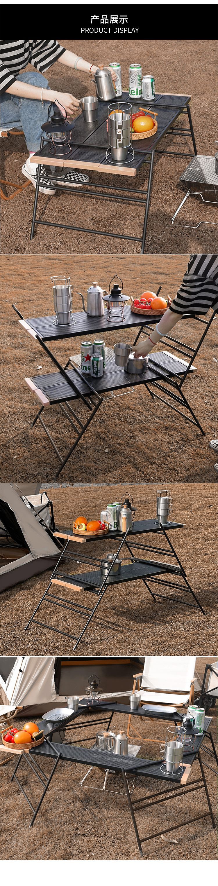 Meja Kemah, kemah luar ruangan, kombinasi meja kecil dapat dilipat multi-fungsi, rangka piknik, barbekyu, meja piknik