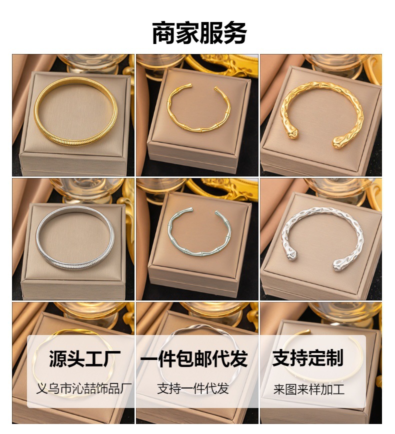 Gelang baja titanium bambu emas 18K, gelang indah modis sederhana cocok untuk semua, sumber pabrik batch langsung 2024