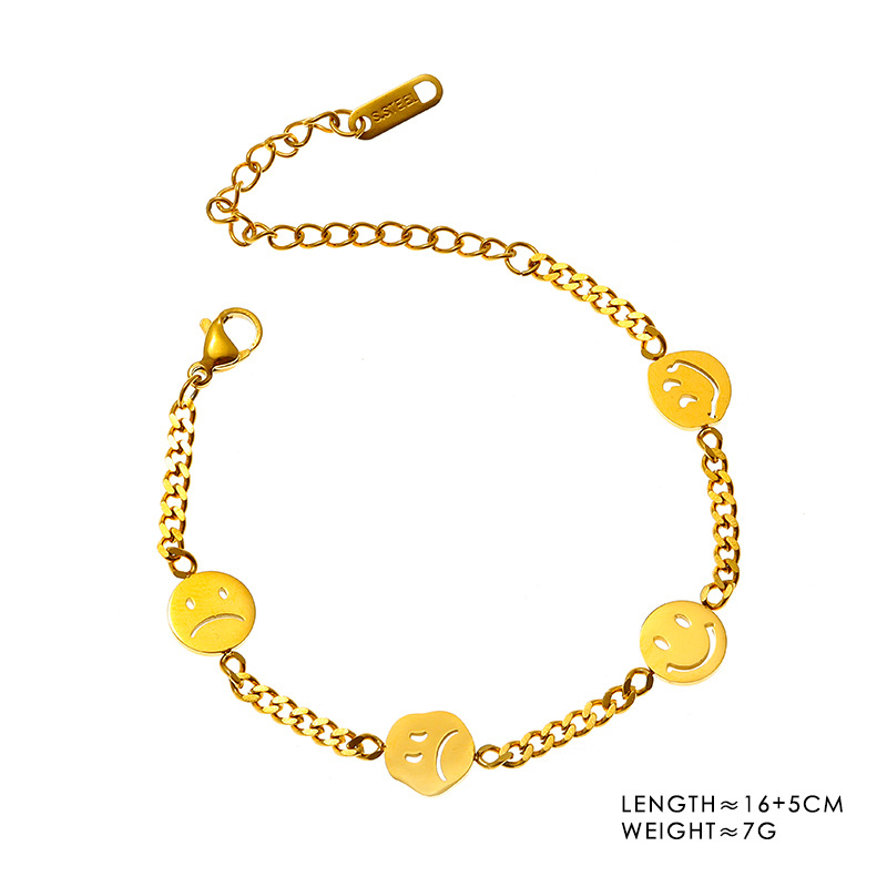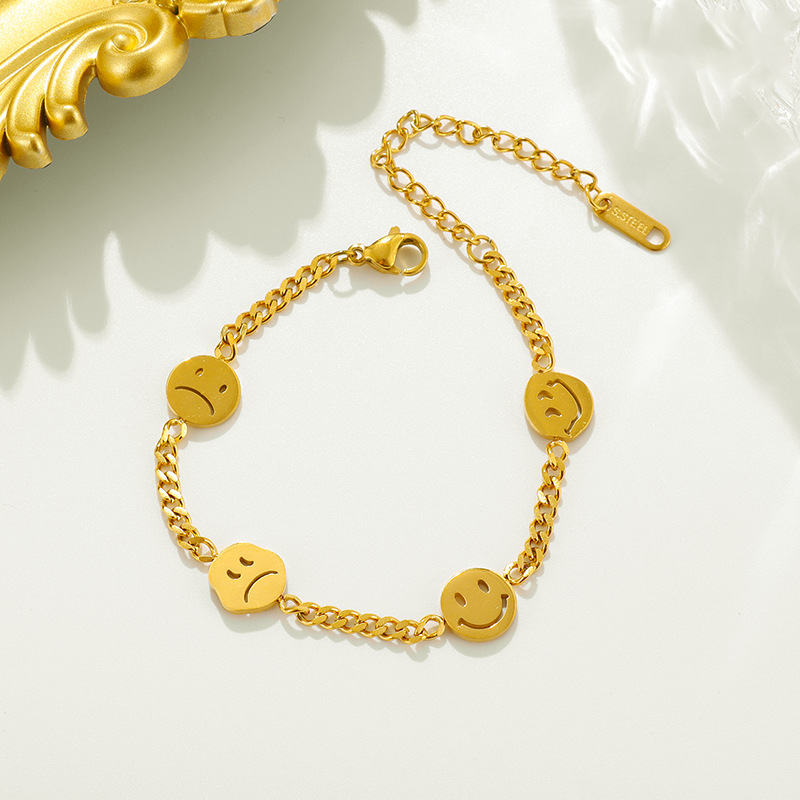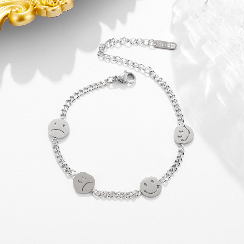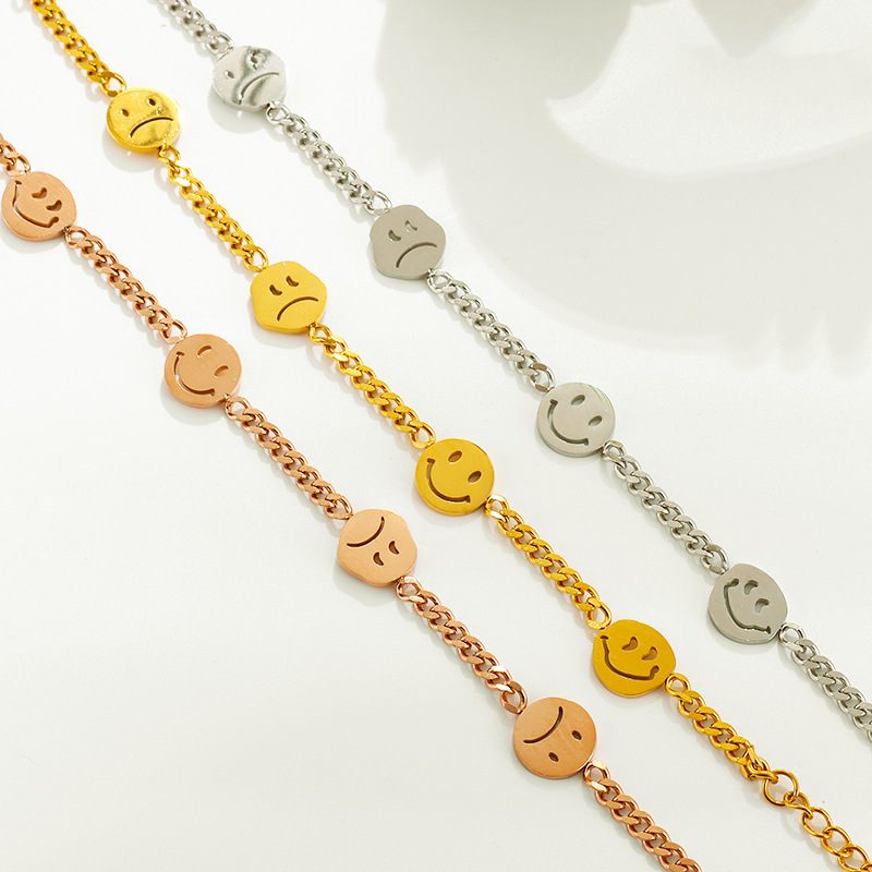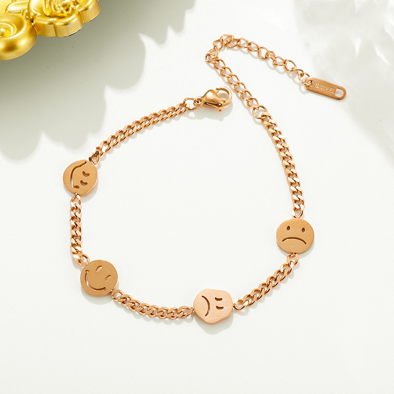 Gelang modis bermerek, gelang wajah tersenyum sederhana 18K gaya Korea baja titanium tidak pudar gaya pasangan gaya sama untuk pria dan wanita