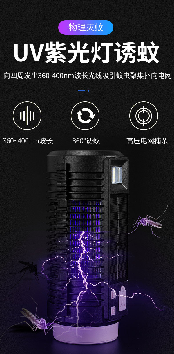 Lampu portabel bertenaga surya, senter LED multifungsi pembasmi nyamuk untuk luar ruangan, lampu sorot, tahan air dan portabel