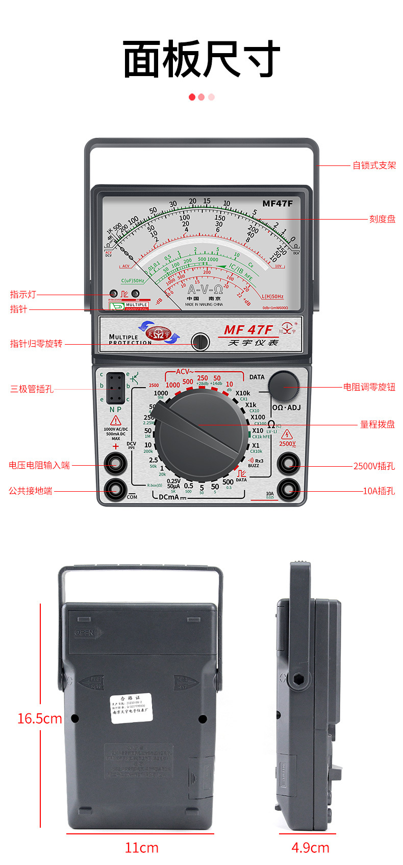 Nanjing Tianyu MF47 Analog Universal Meteran Mekanik Tipe 47C MF47F 47A 47B 47L 47T