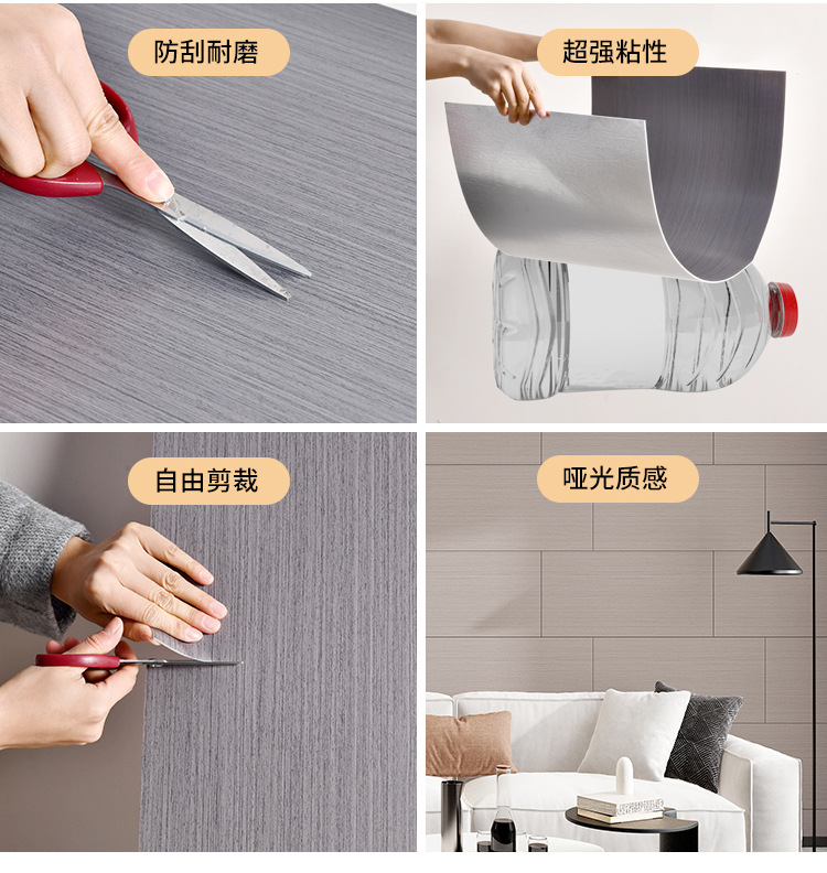 Stiker dinding motif kayu imitasi, stiker dinding tiga dimensi tebal, stiker pelat plastik aluminium, stiker latar belakang ruang tamu dapur antiair jelek dan berperekat