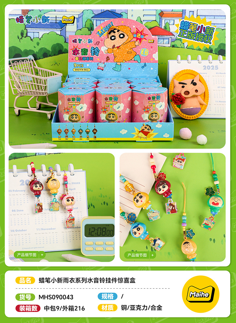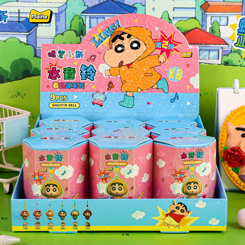 Mai He Crayon Shinchan Jas Hujan Seri Air Suara Lonceng Liontin Kotak Kejutan (9 pcs/Display Box) Gantungan Kejutan