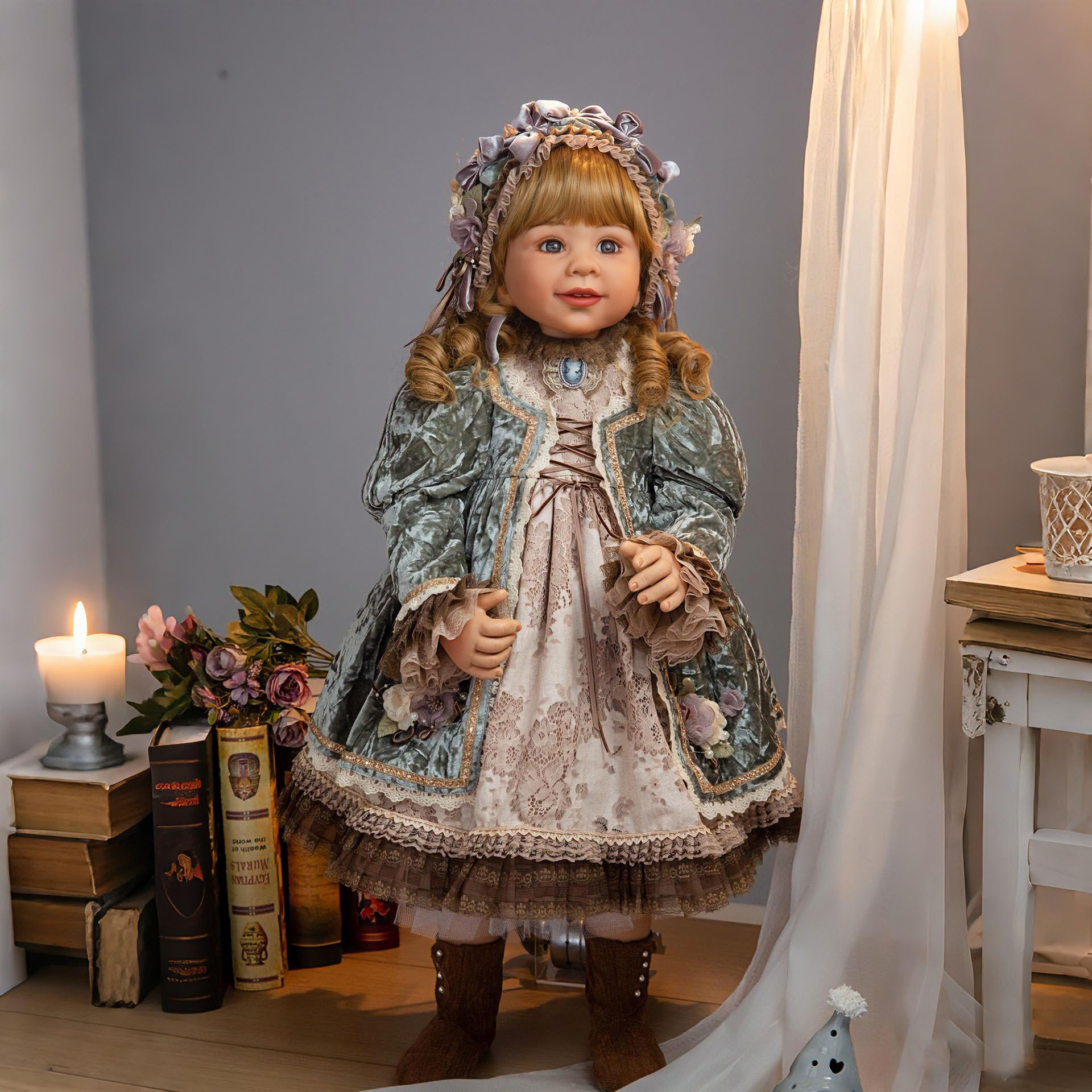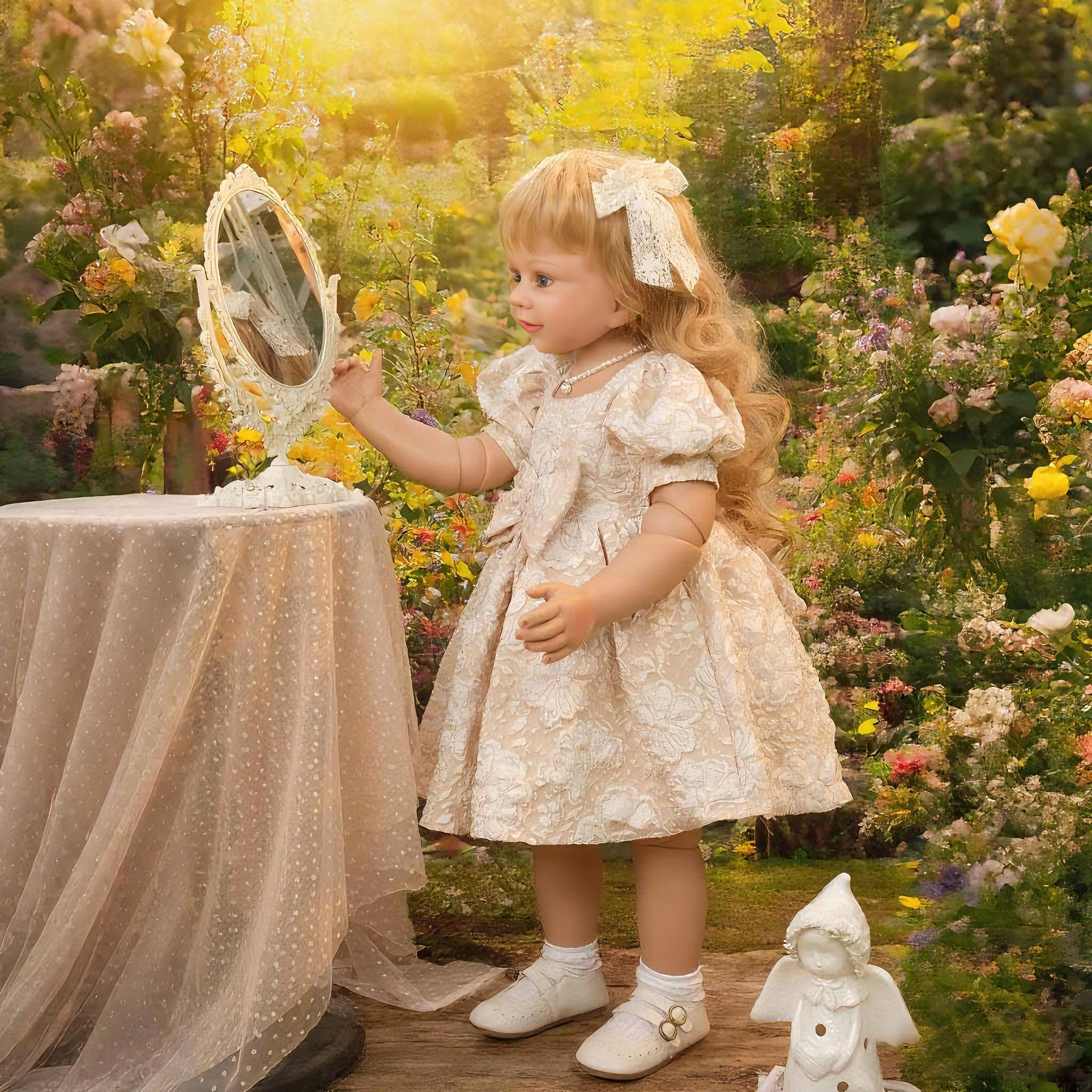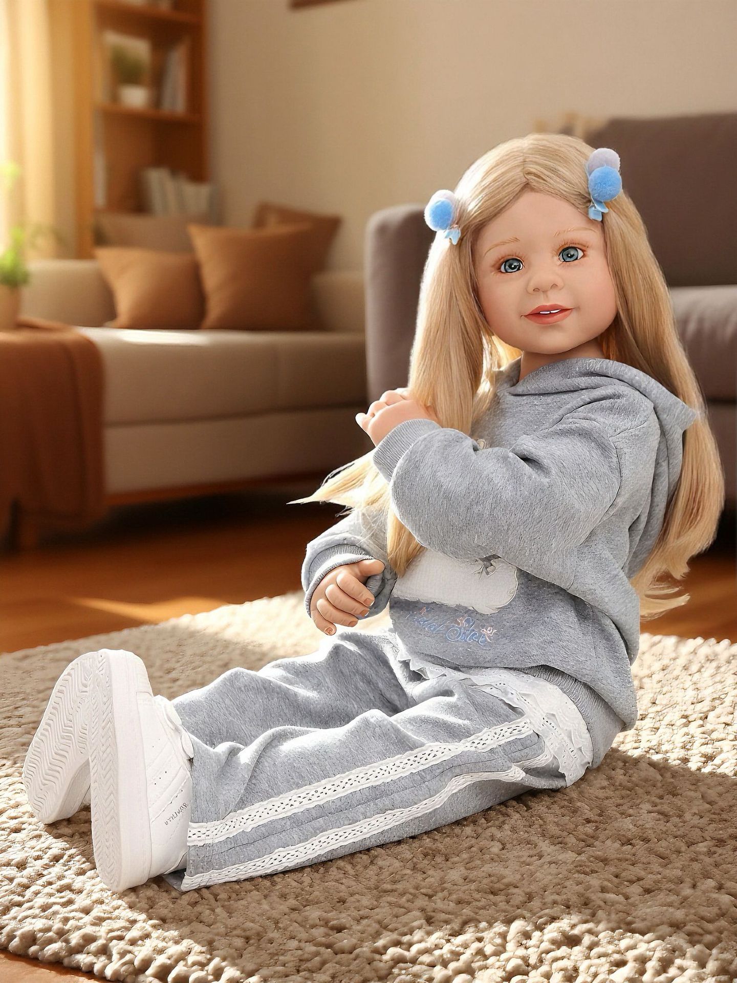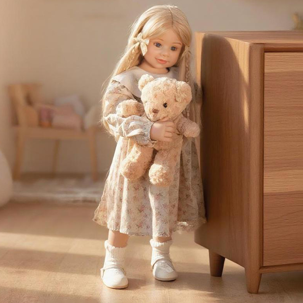 娃娃头,手肘,膝盖有球形关节,可以灵活转动,摆出各种姿势。