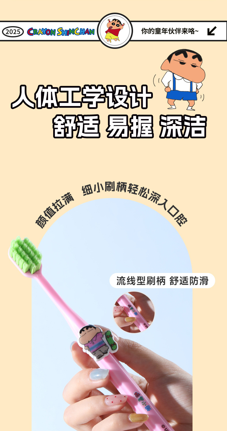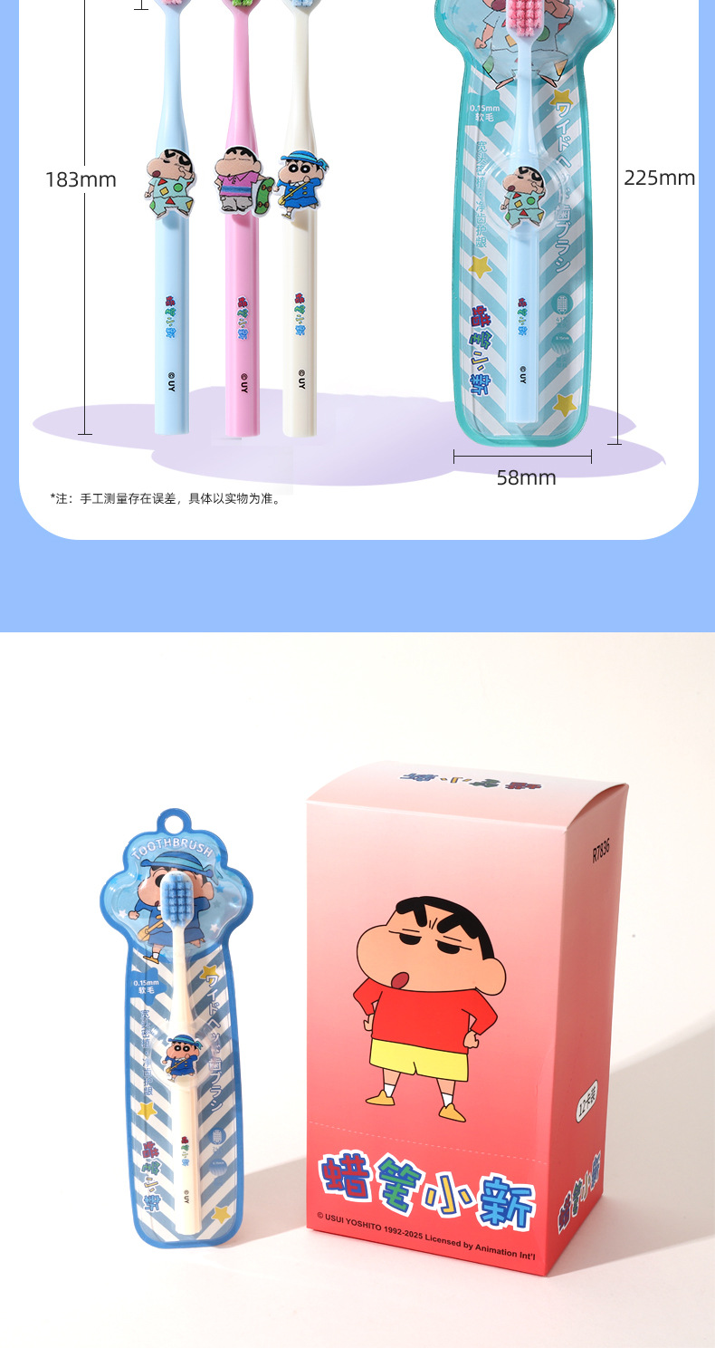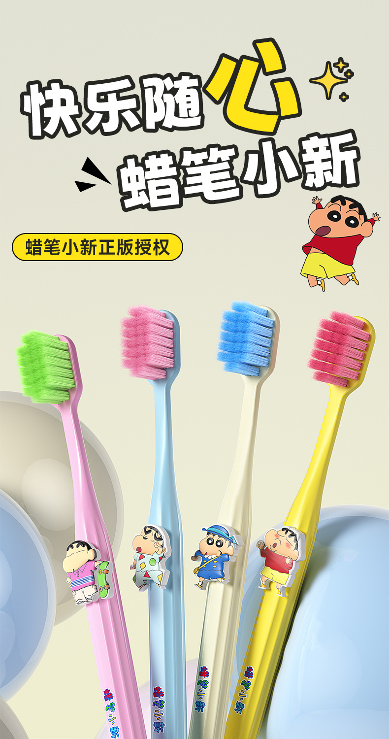 蜡笔小新正版授权单支装牙刷可爱公仔宽头护龈牙刷女手动清洁牙刷