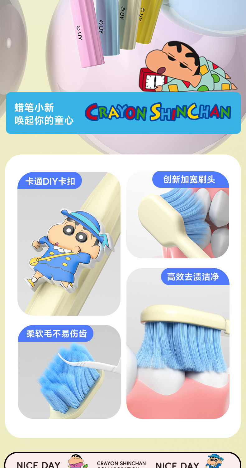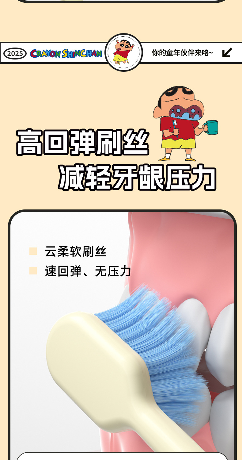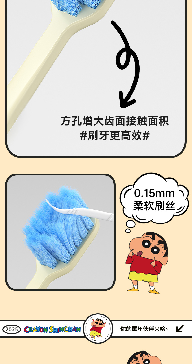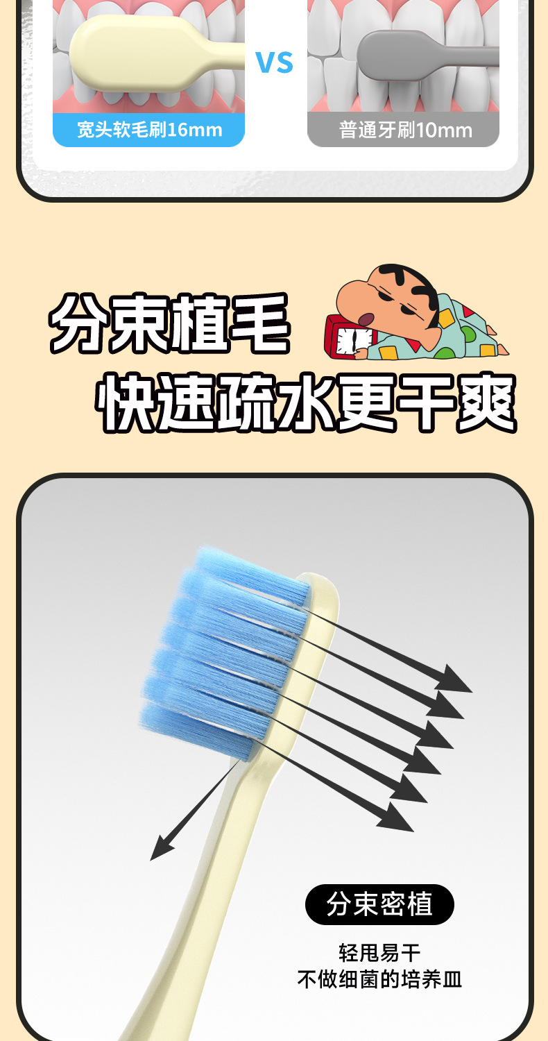 蜡笔小新正版授权单支装牙刷可爱公仔宽头护龈牙刷女手动清洁牙刷
