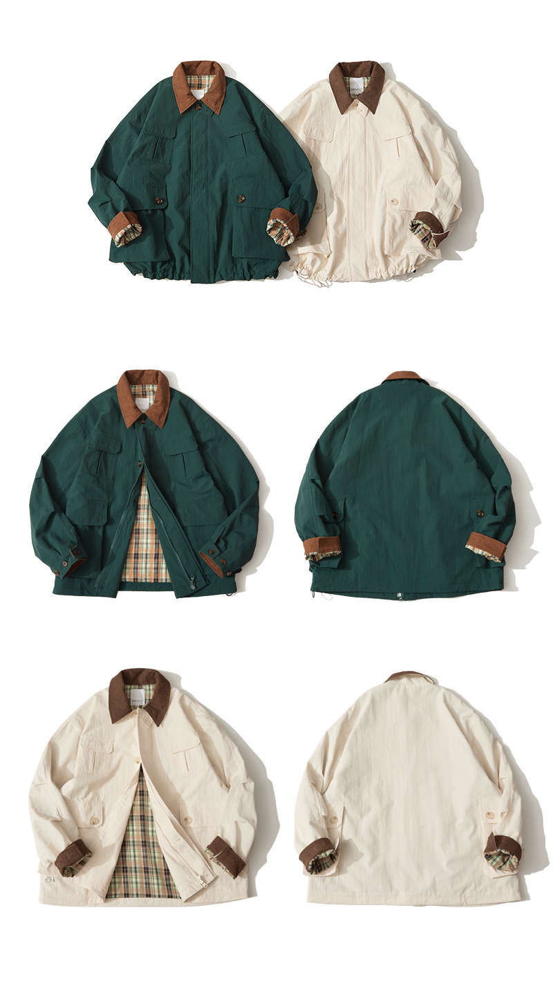 Musim gugur gaya Jepang merek tahan air multi-saku komposit korduroi kerah pemburu jaket mantel A011-W253