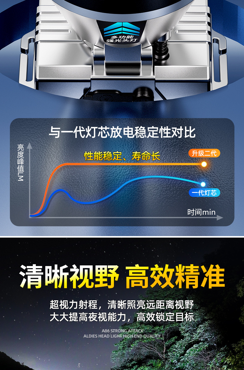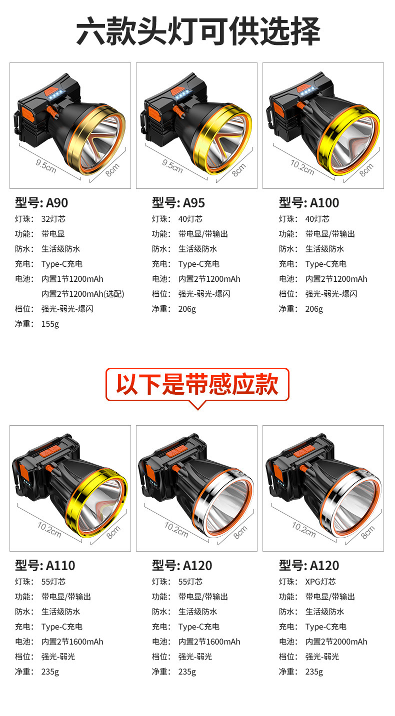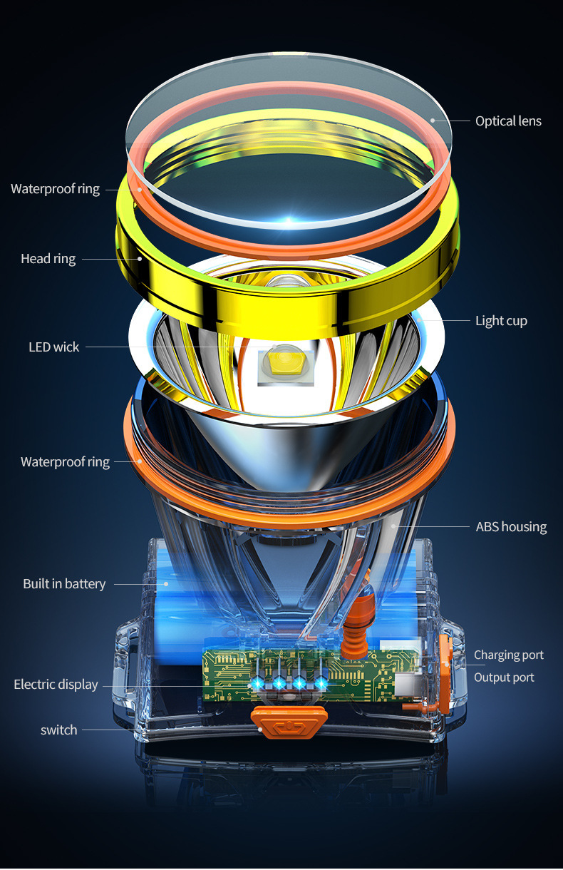 Lampu depan led, lampu depan led jarak jauh dapat diisi ulang tahan air super terang dipasang di kepala lampu memancing malam miner lampu senter daya tahan lama super