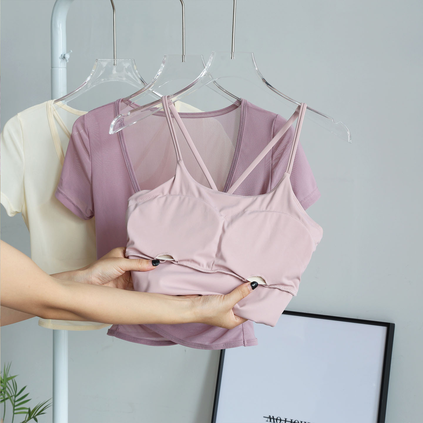 普拉提运动健身短袖上衣带胸垫瑜伽服高级感运动健身骑行训练服女