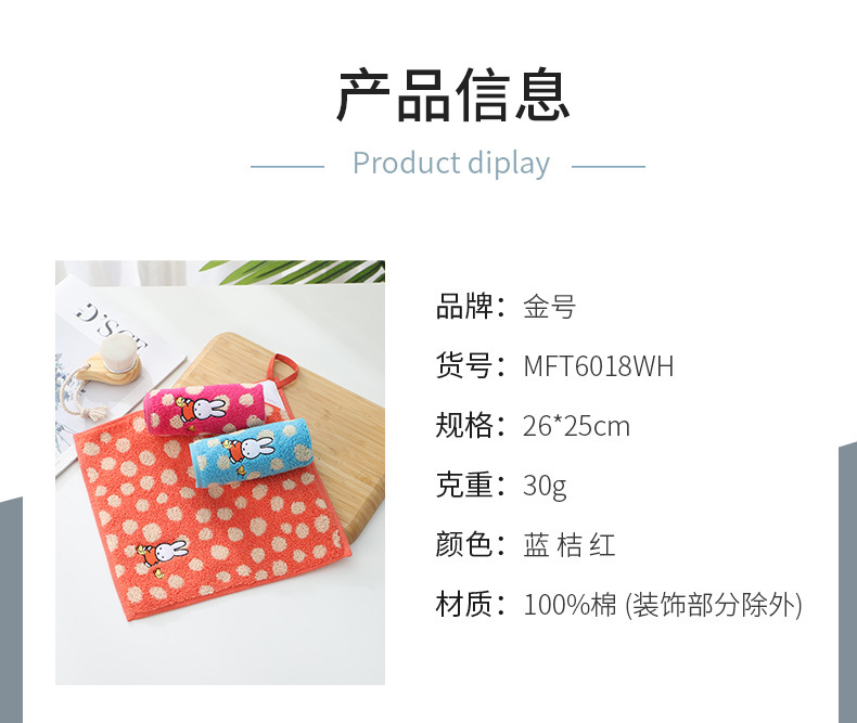 金号MFT6018WH婴幼儿园带挂绳米菲儿童小方巾擦手帕巾可爱卡通a类