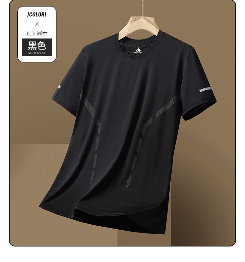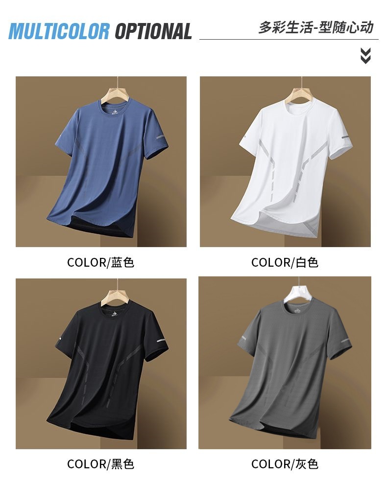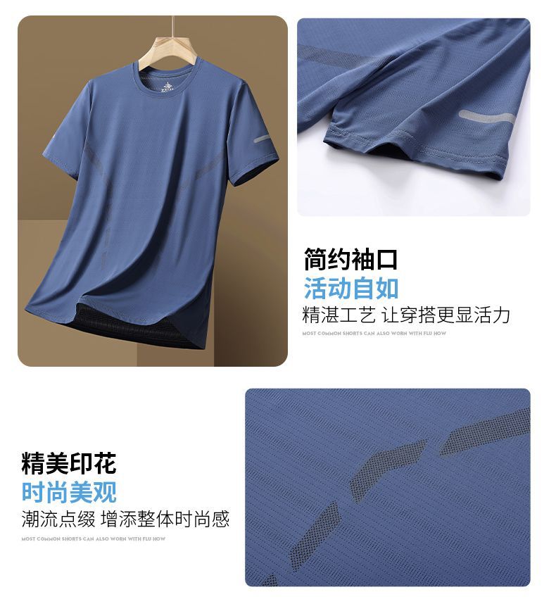Kaus lengan pendek pria, musim panas sutra es jala lengan pendek leher bulat tipis longgar bernapas setengah ukuran plus