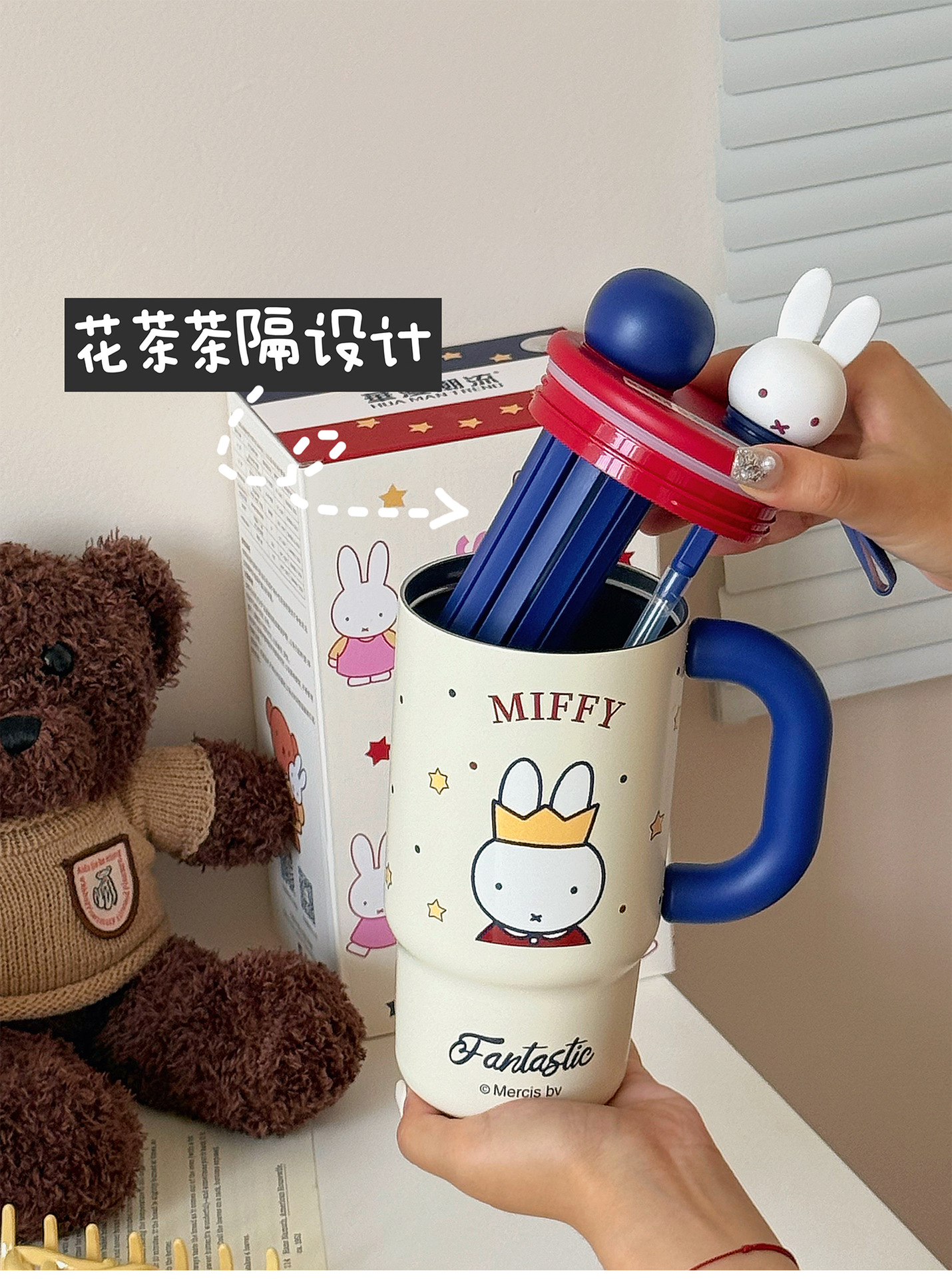 米菲水杯吸管保温杯冰霸杯女生高颜值卡通大容量泡茶杯子双饮杯