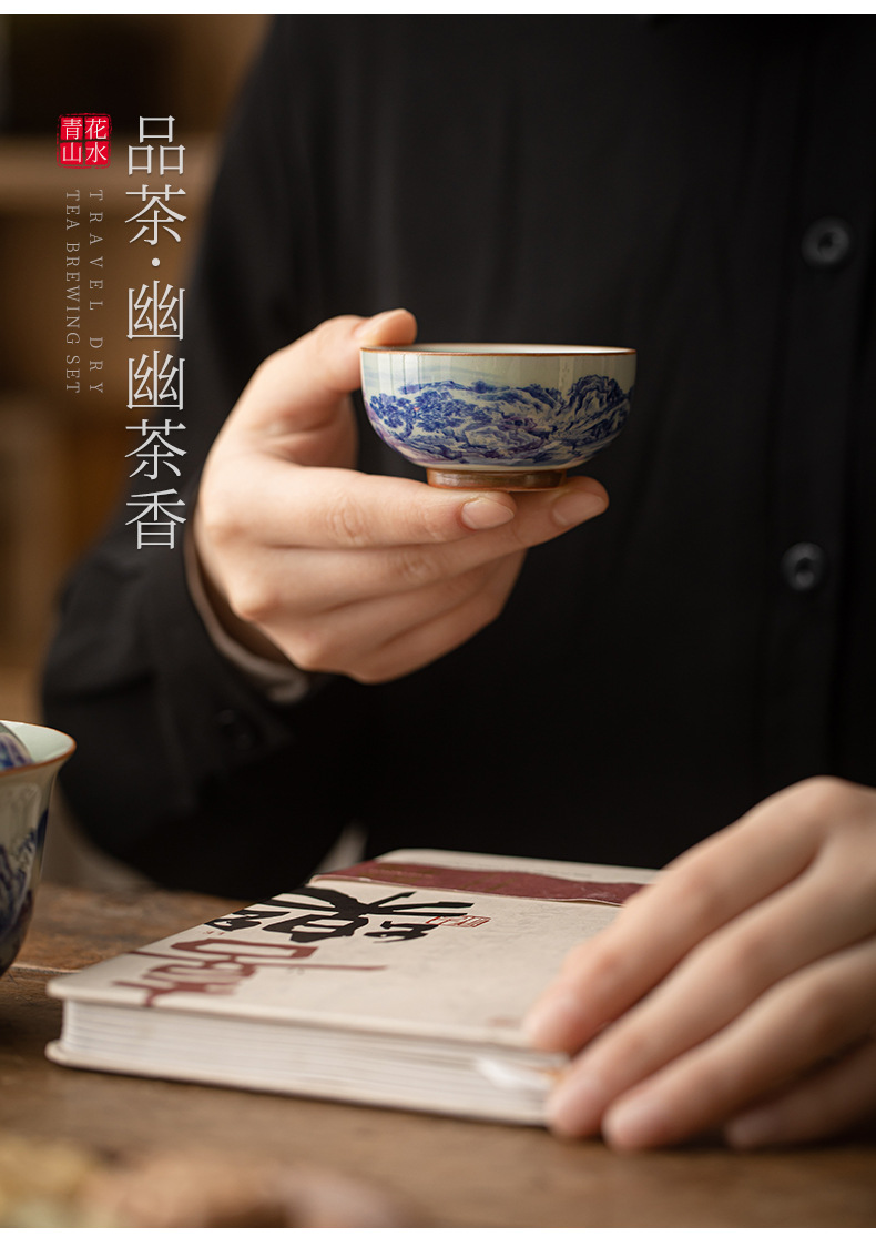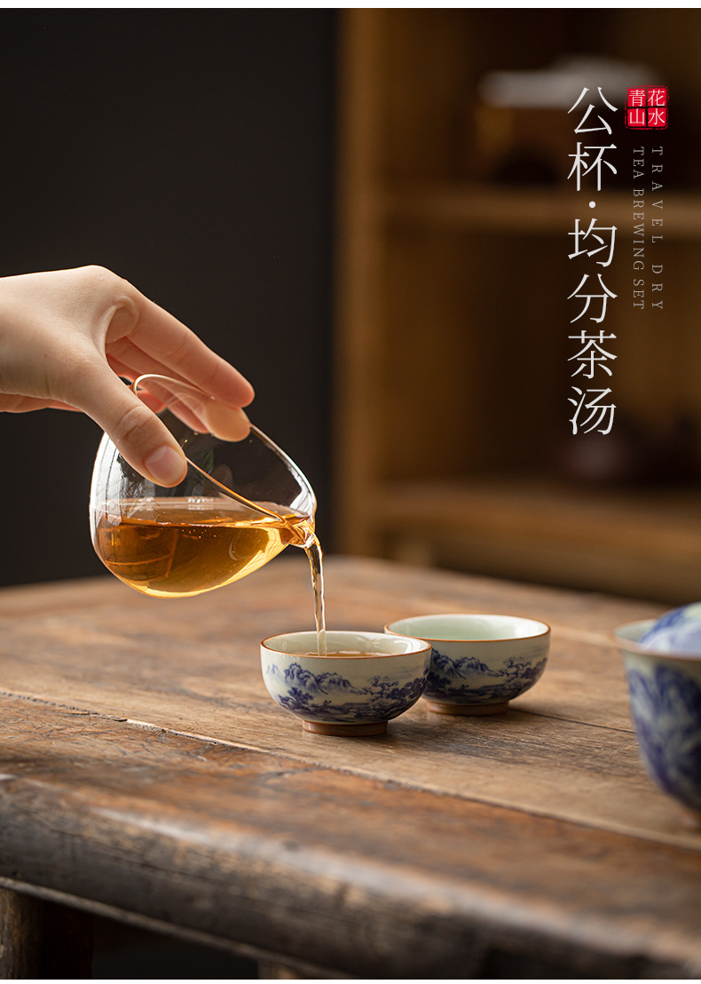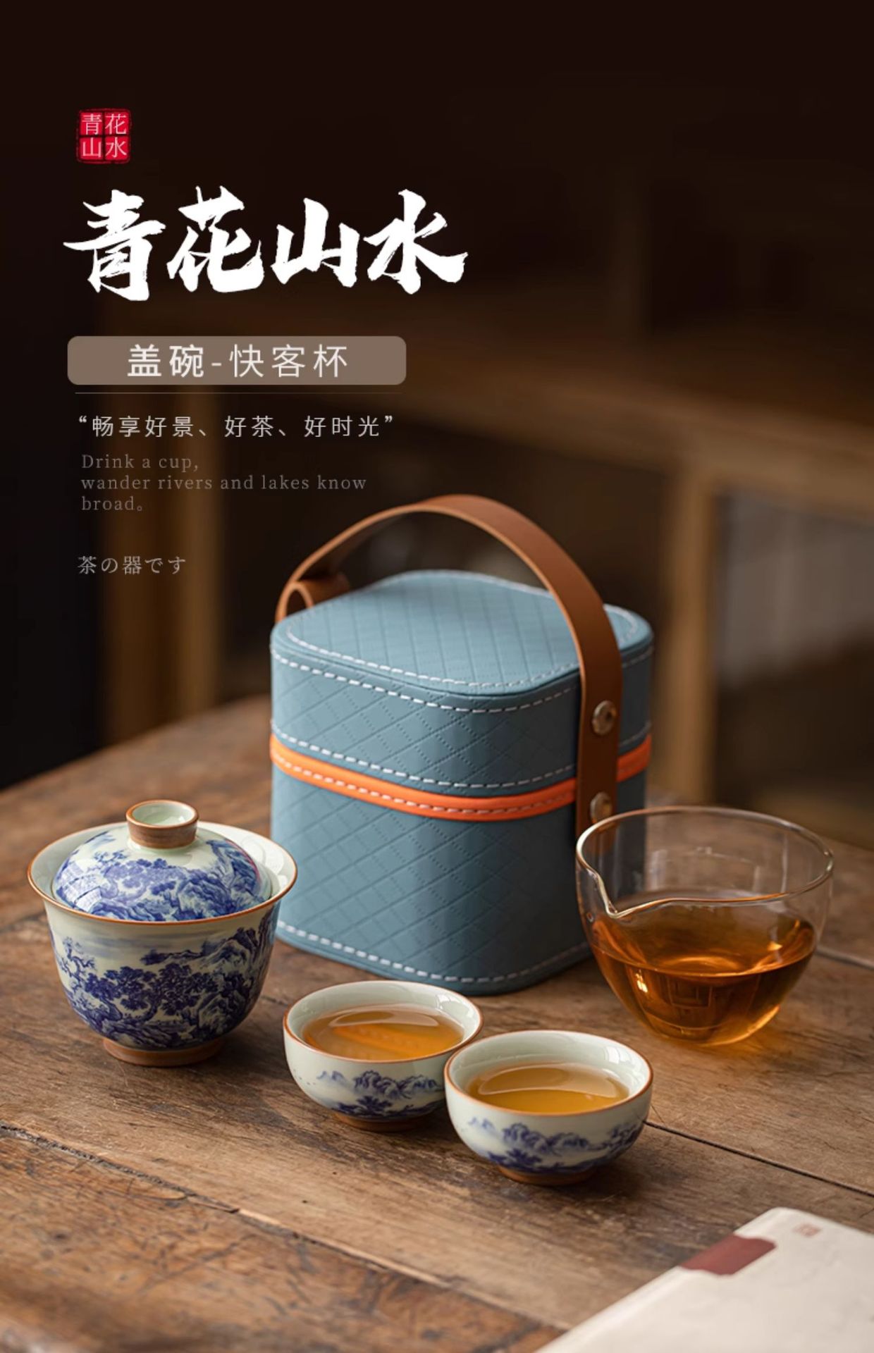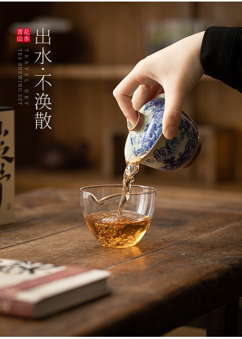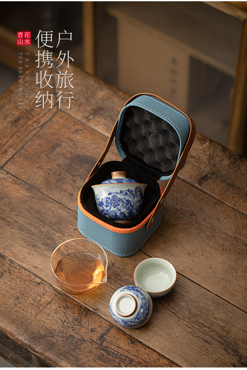 旅行茶具套装一壶两杯青花山水户外随身功夫茶具便携式盖碗快客杯