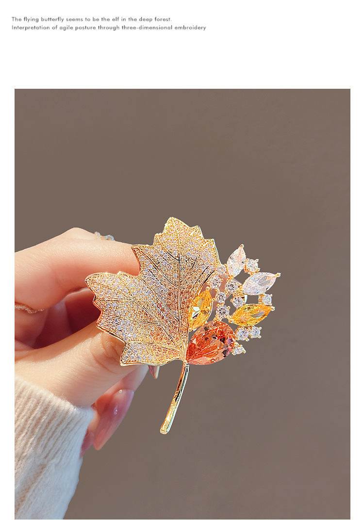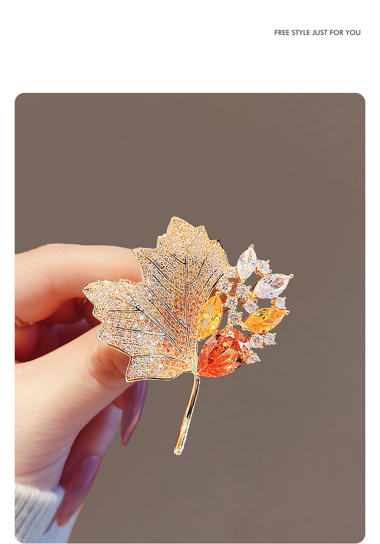 Bros kristal berongga retro kelas atas wanita, aksesori pakaian tetap pin korsase daun Maple berlian imitasi kelas atas