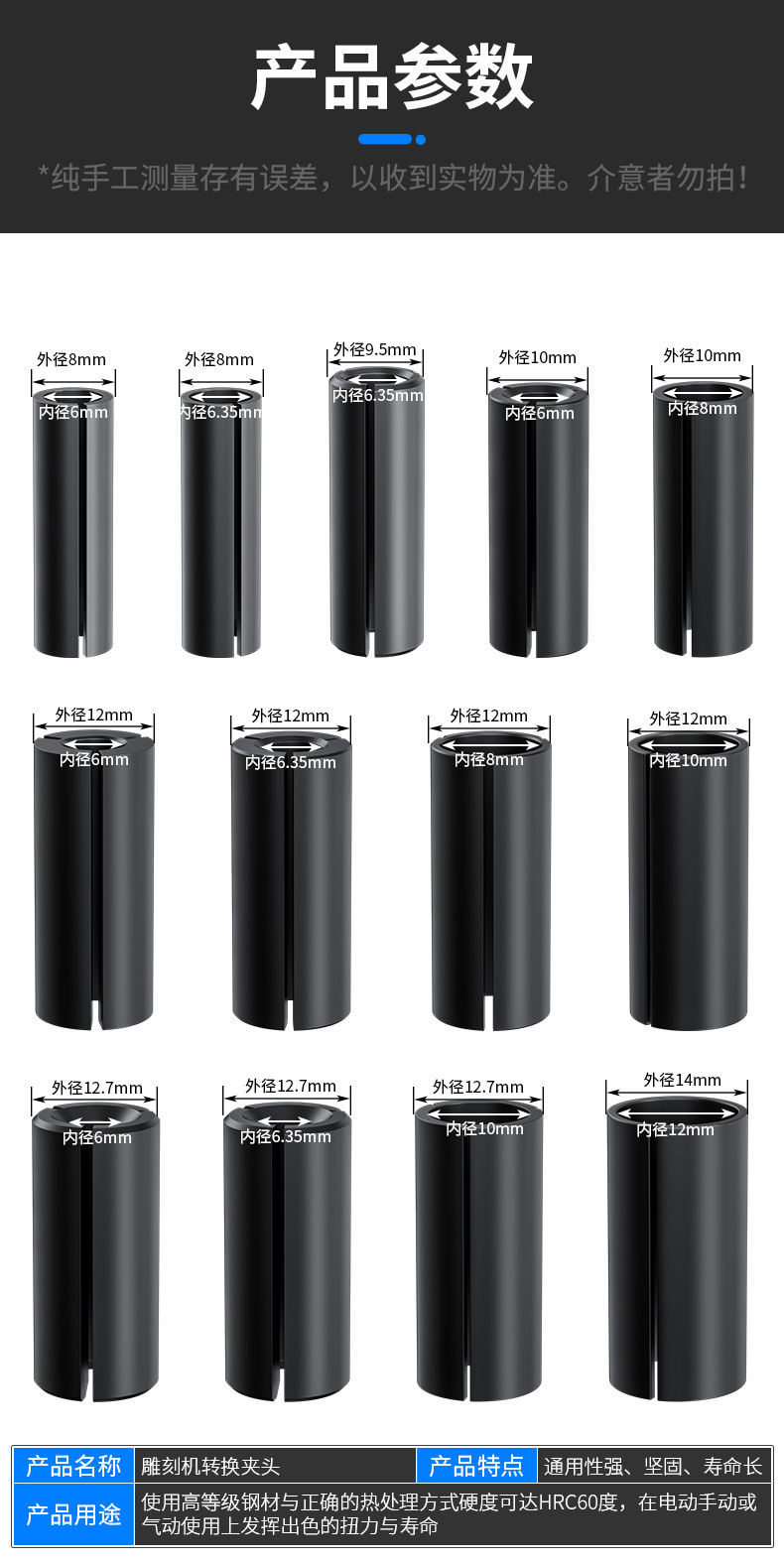 雕刻机转换夹头柄变径转换套1/2木工铣刀具夹头修边机电木铣螺帽