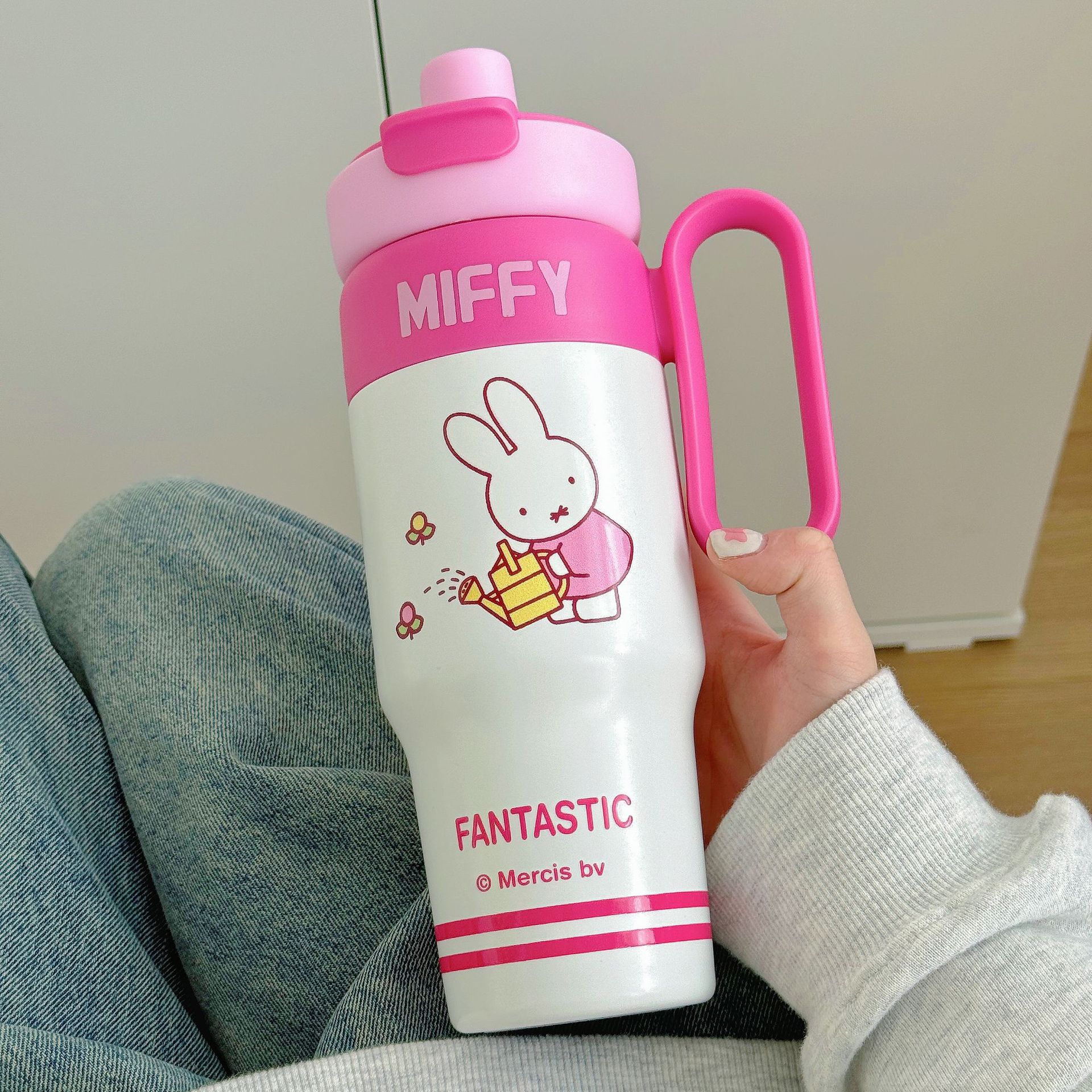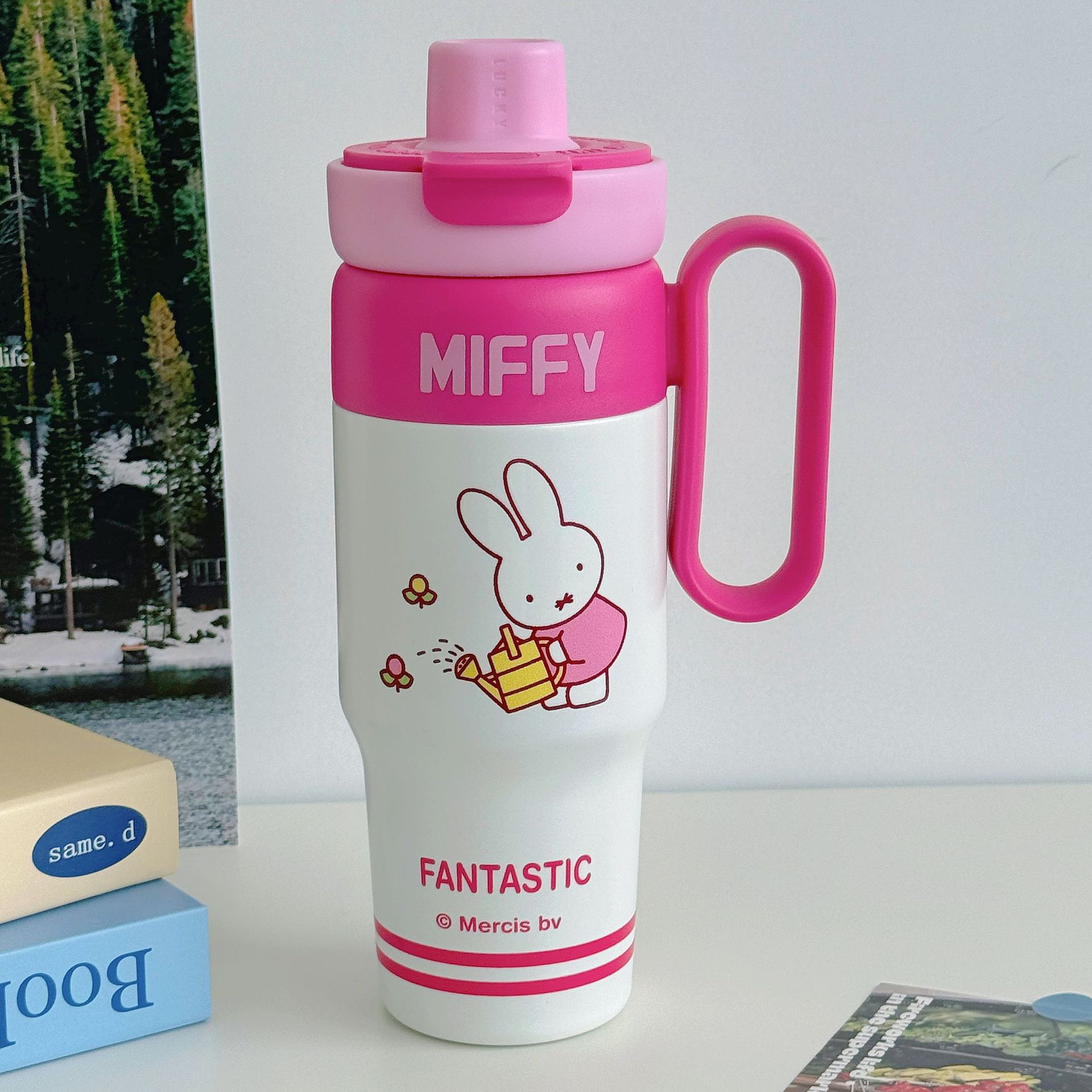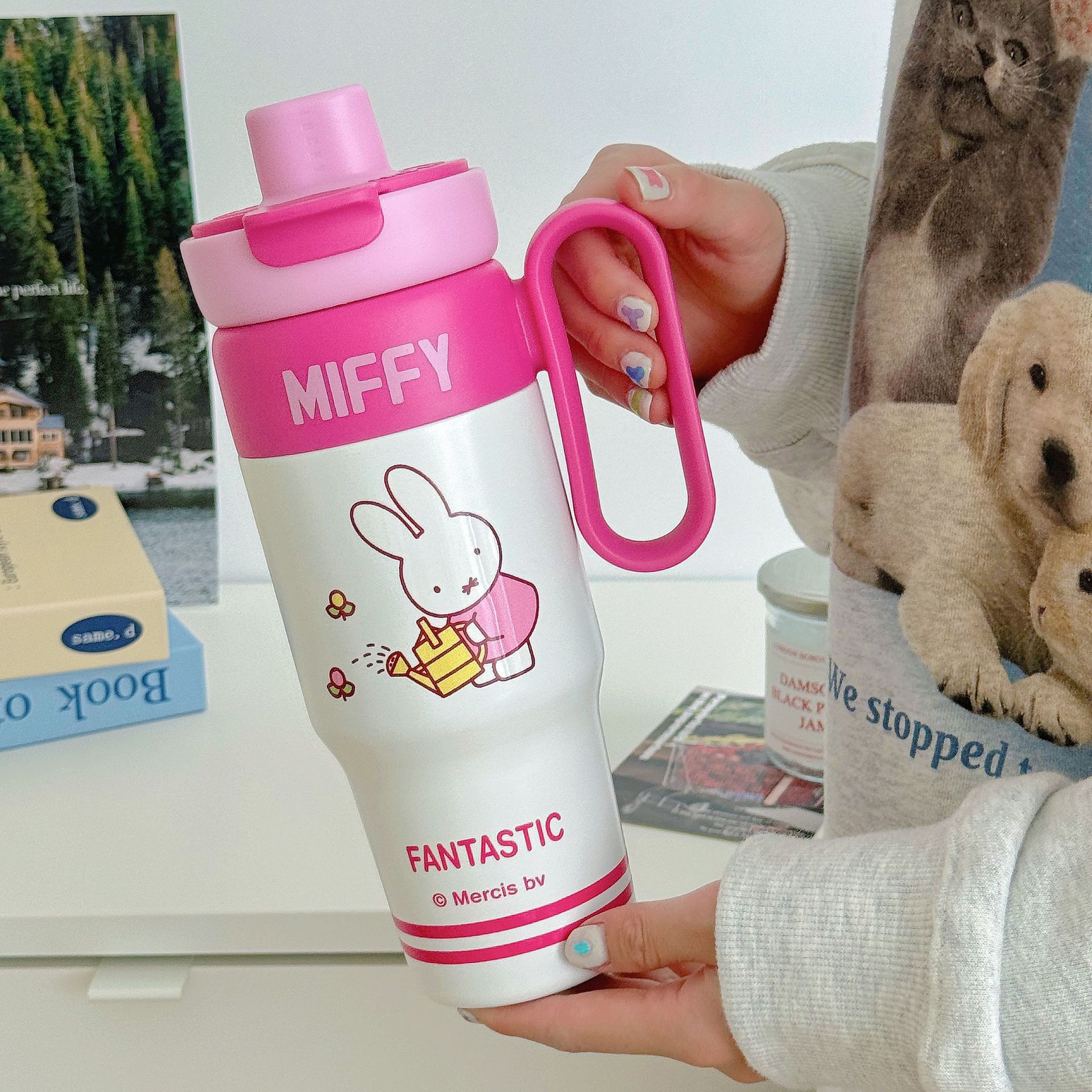 Miffy Ice Mill Cup Gadis dengan Nilai Wajah Tinggi dan Sedotan Kapasitas Besar Minuman Langsung Dua Penggunaan Gelas Tahan Panas 316 Stainless Steel Liner