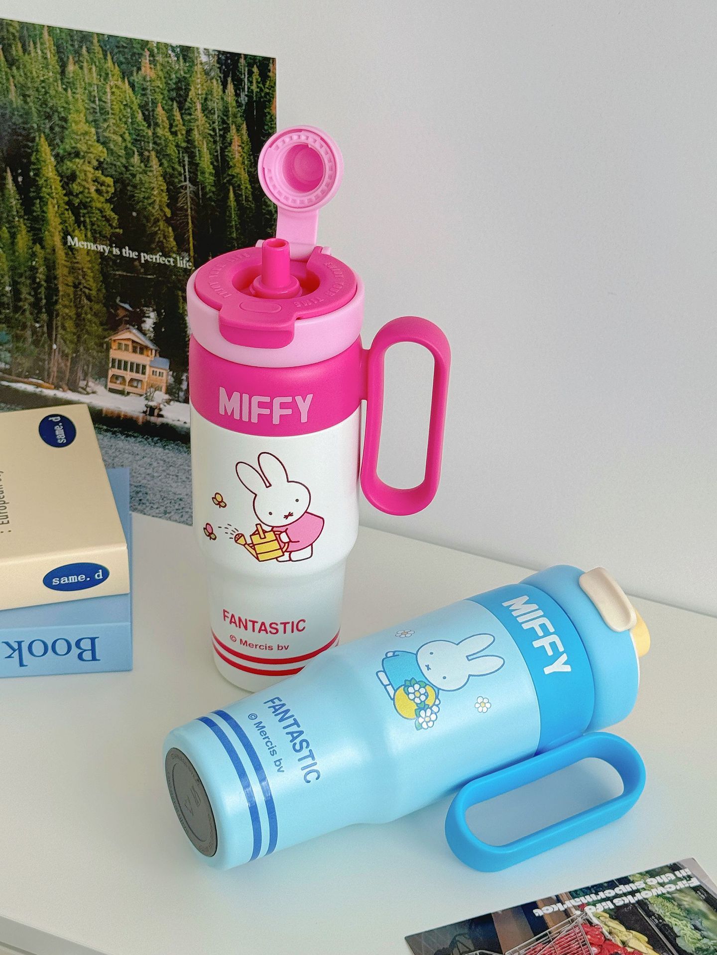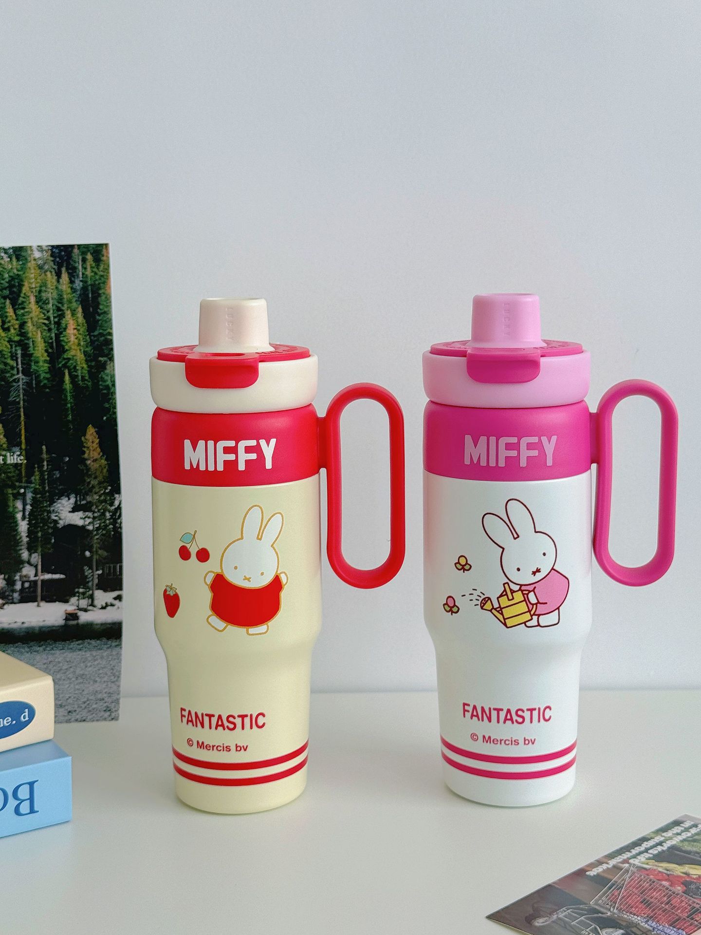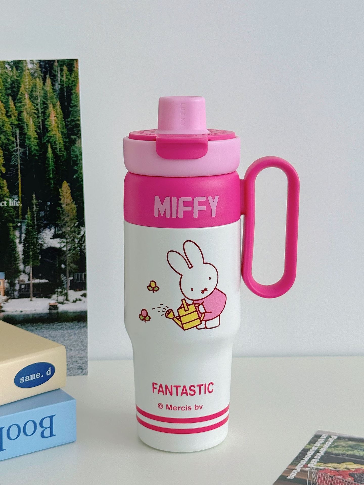 Miffy Ice Mill Cup Gadis dengan Nilai Wajah Tinggi dan Sedotan Kapasitas Besar Minuman Langsung Dua Penggunaan Gelas Tahan Panas 316 Stainless Steel Liner