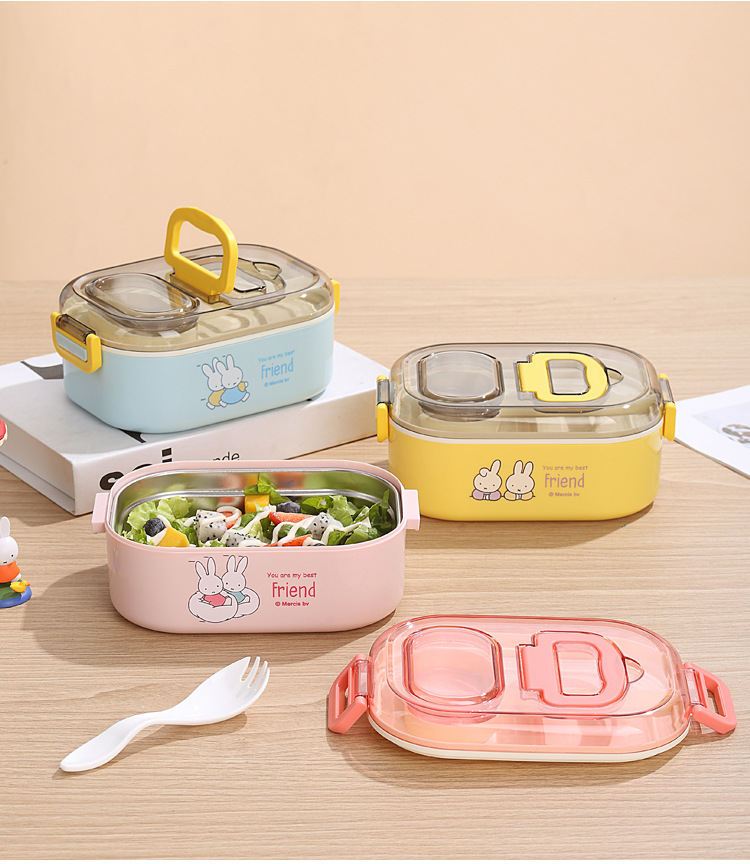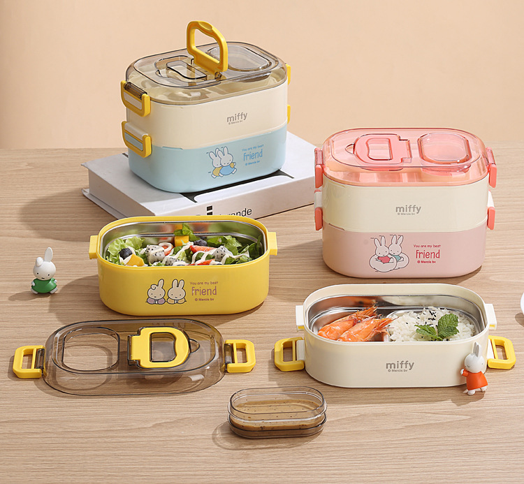 MIFFY304 kotak makan siang kompartemen baja tahan karat pemanas injeksi air siswa anak-anak pekerja kantor kartun Bento portabel