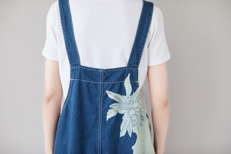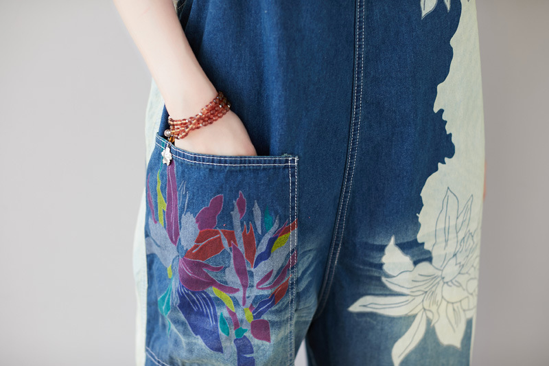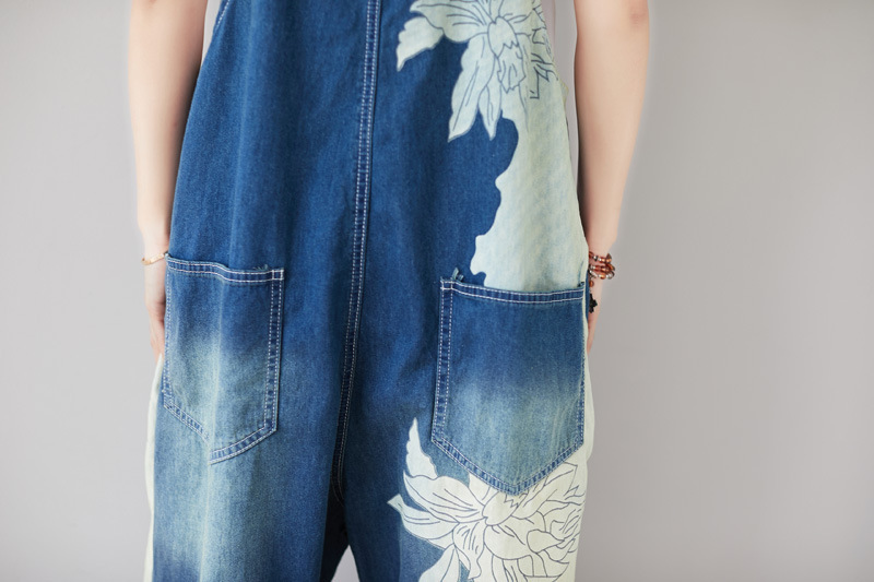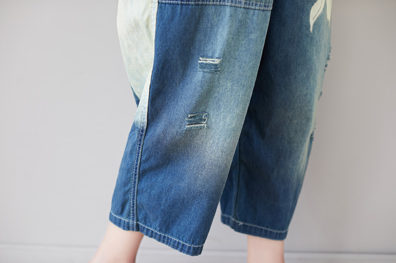 Celana jeans patchwork gaya baru 2025, asimetris, ukuran besar, model overall dicuci, potongan pendek, kaki lebar, kasual, serbaguna