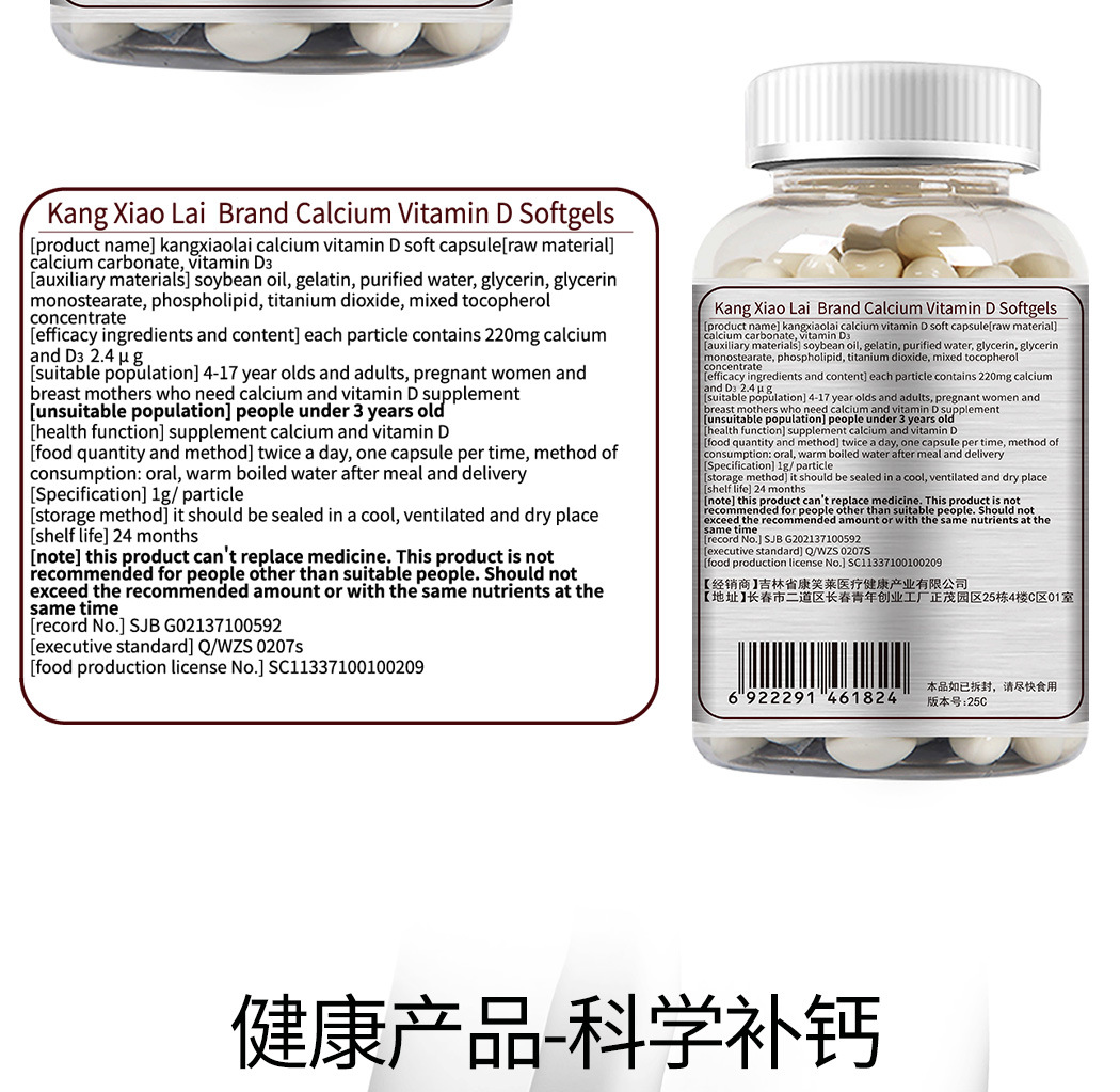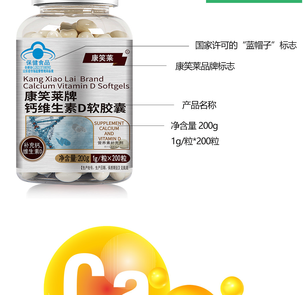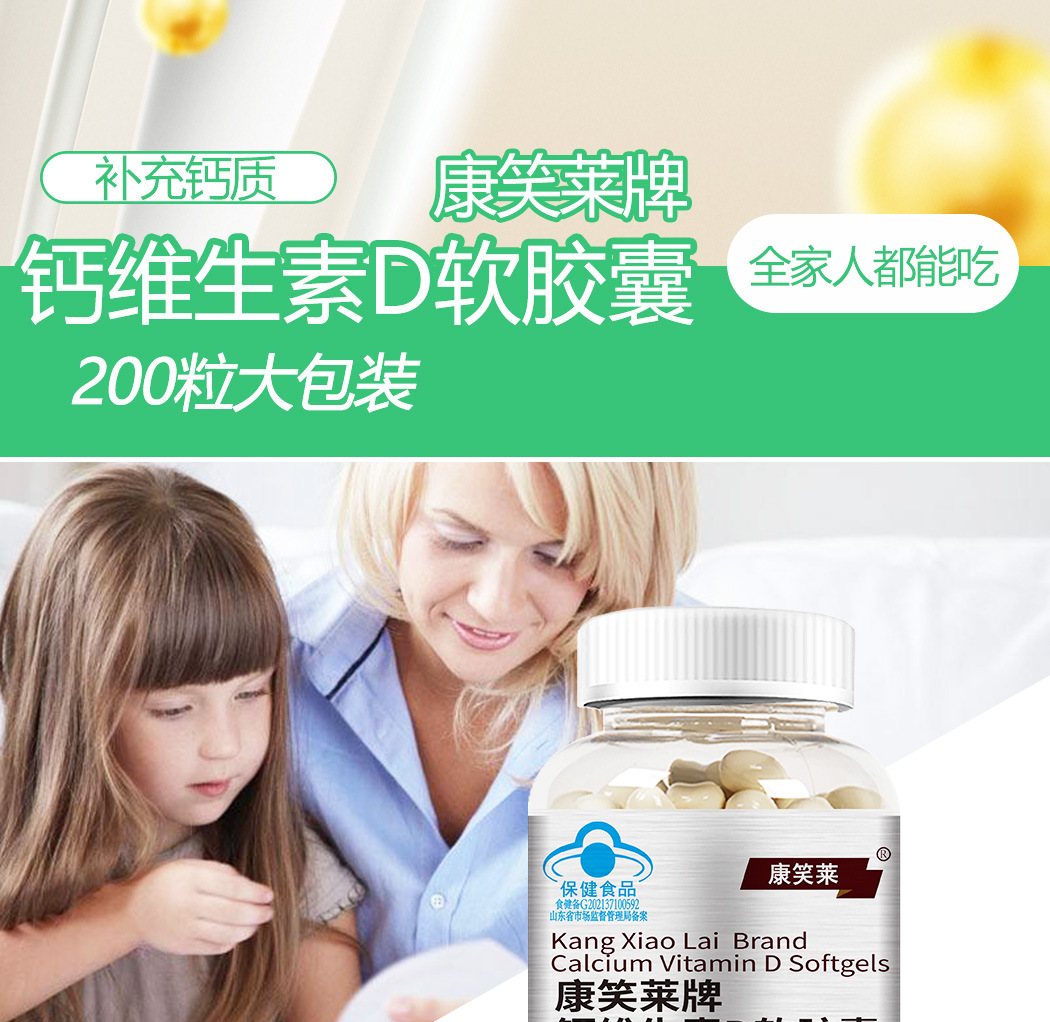 Kangxiaolai tablet kalsium vitamin D, tablet kalsium vitamin D kapsul lembut 200 Weikang kalsium cair untuk wanita paruh baya dan Dewasa dan hamil