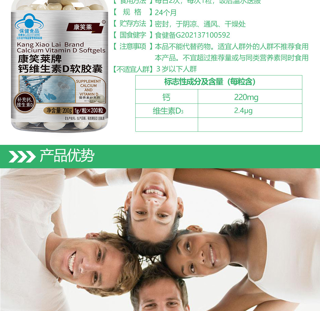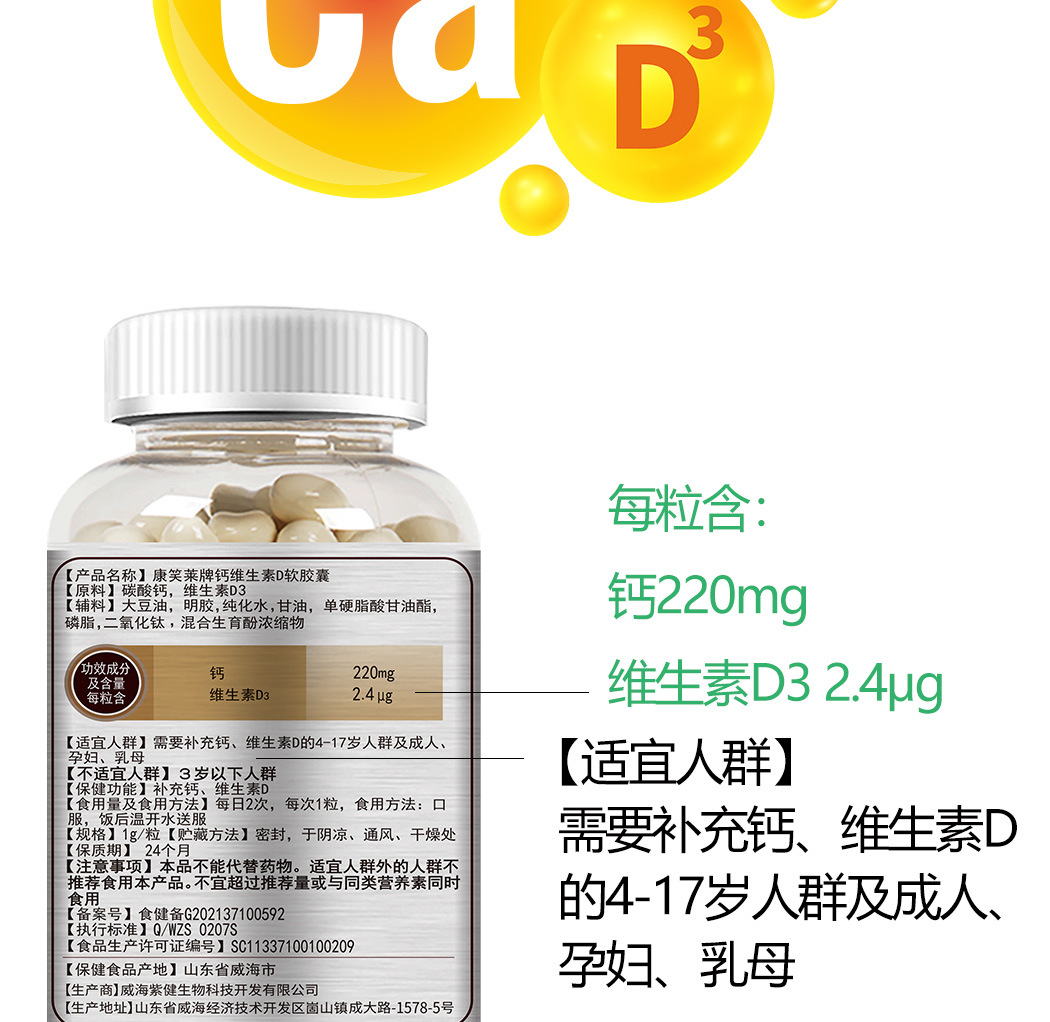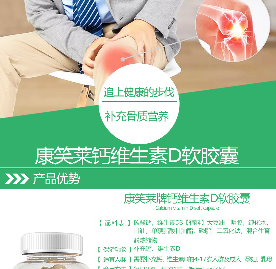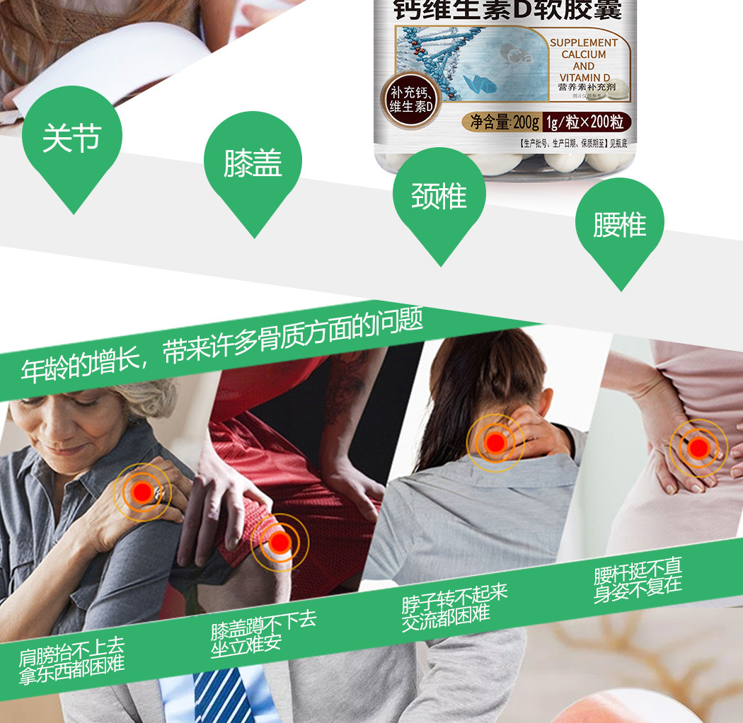 Kangxiaolai tablet kalsium vitamin D, tablet kalsium vitamin D kapsul lembut 200 Weikang kalsium cair untuk wanita paruh baya dan Dewasa dan hamil