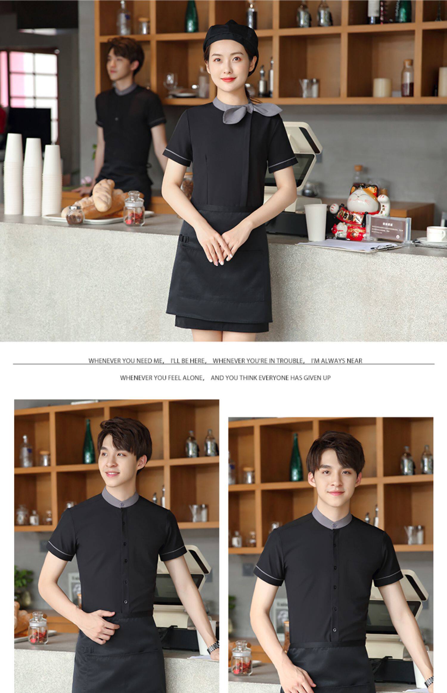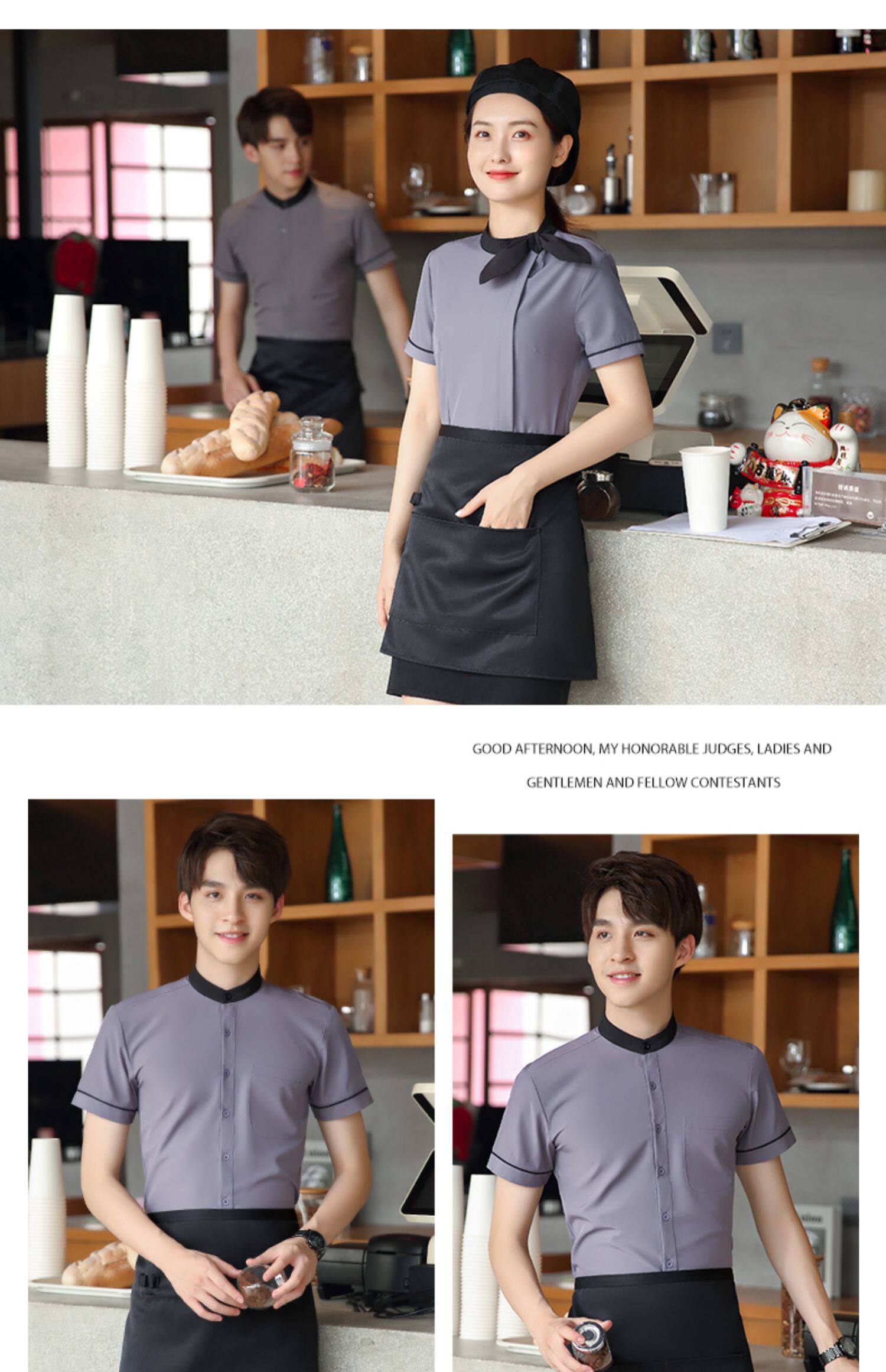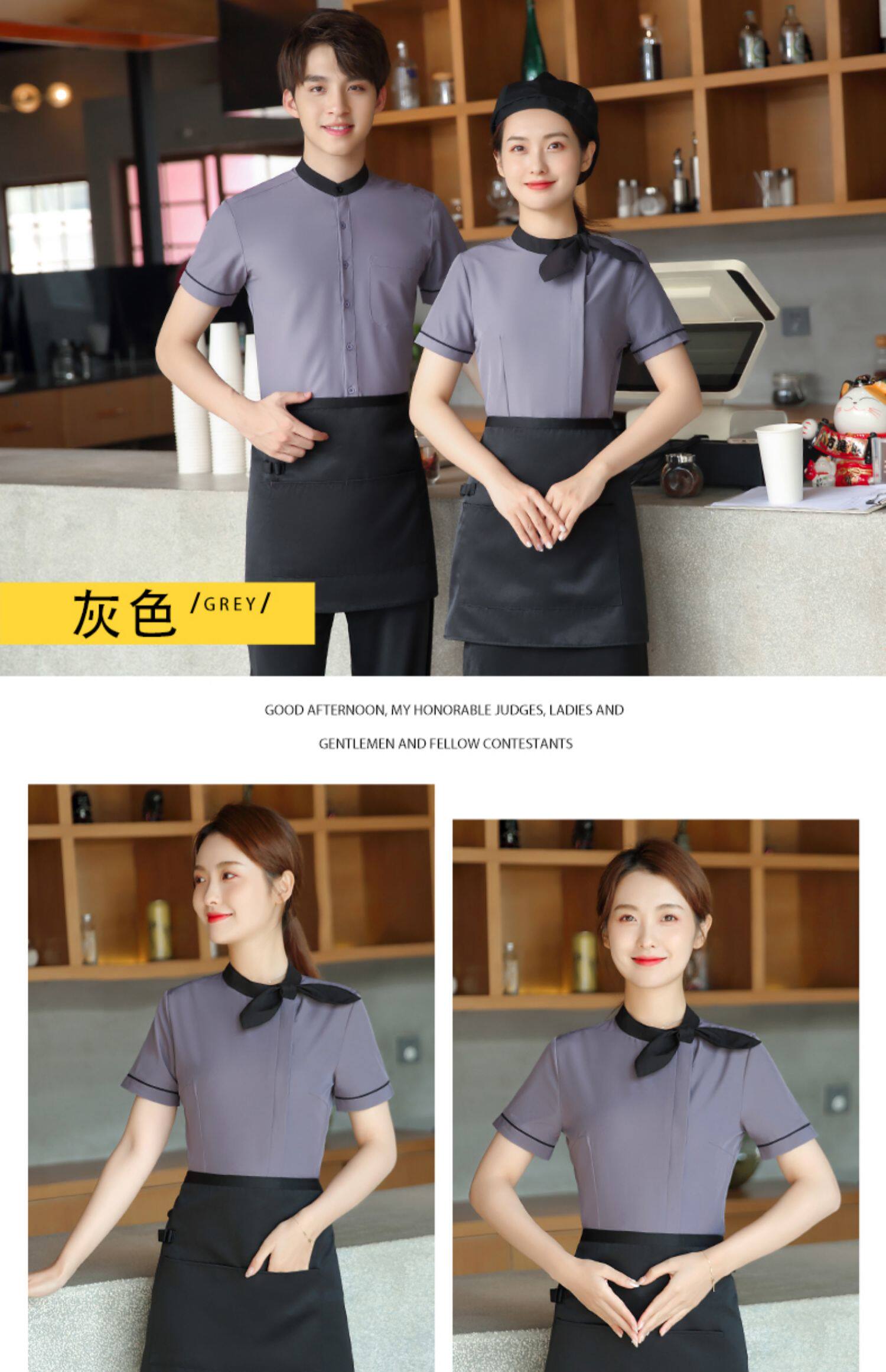 Baju kerja pelayan katering Hotel pria wanita, pakaian kerja restoran lengan pendek roti memanggang kue susu teh panas Restoran