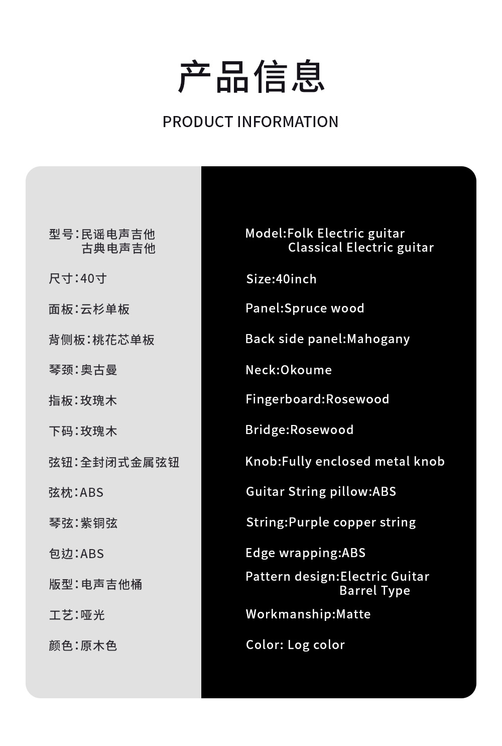 40 Inci Kayu Cemara Inti Bunga Persik Papan Tunggal Penuh Gitar Elektrik Gitar Elektrik Gitar Elektrik Gitar Elektrik Kotak Listrik Papan Tunggal Gitar Kayu