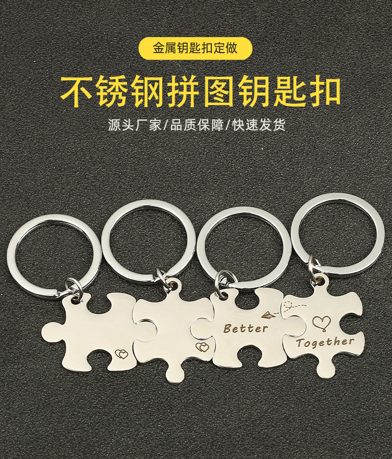 小礼品批发跨境专供金属情侣挂件创意书包挂饰不锈钢拼图钥匙扣