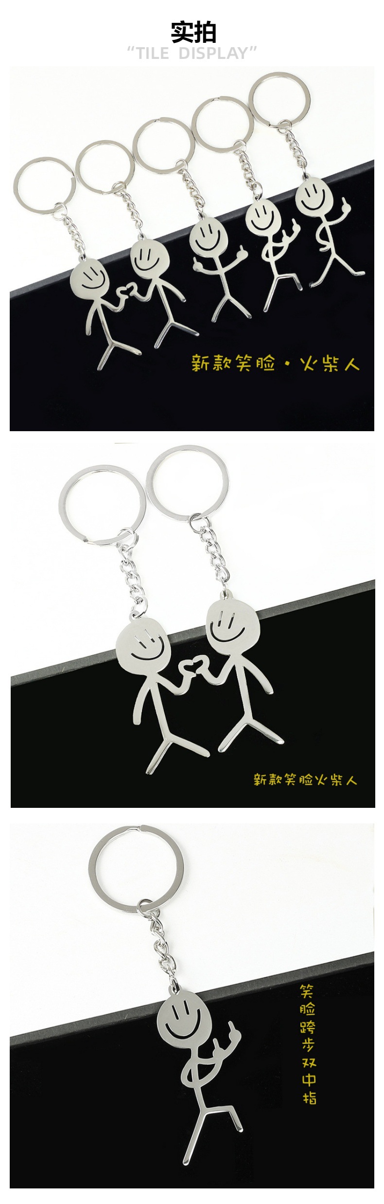跨境可爱简笔画笑脸情侣爱心小人造型吊坠不锈钢火柴人钥匙扣挂件
