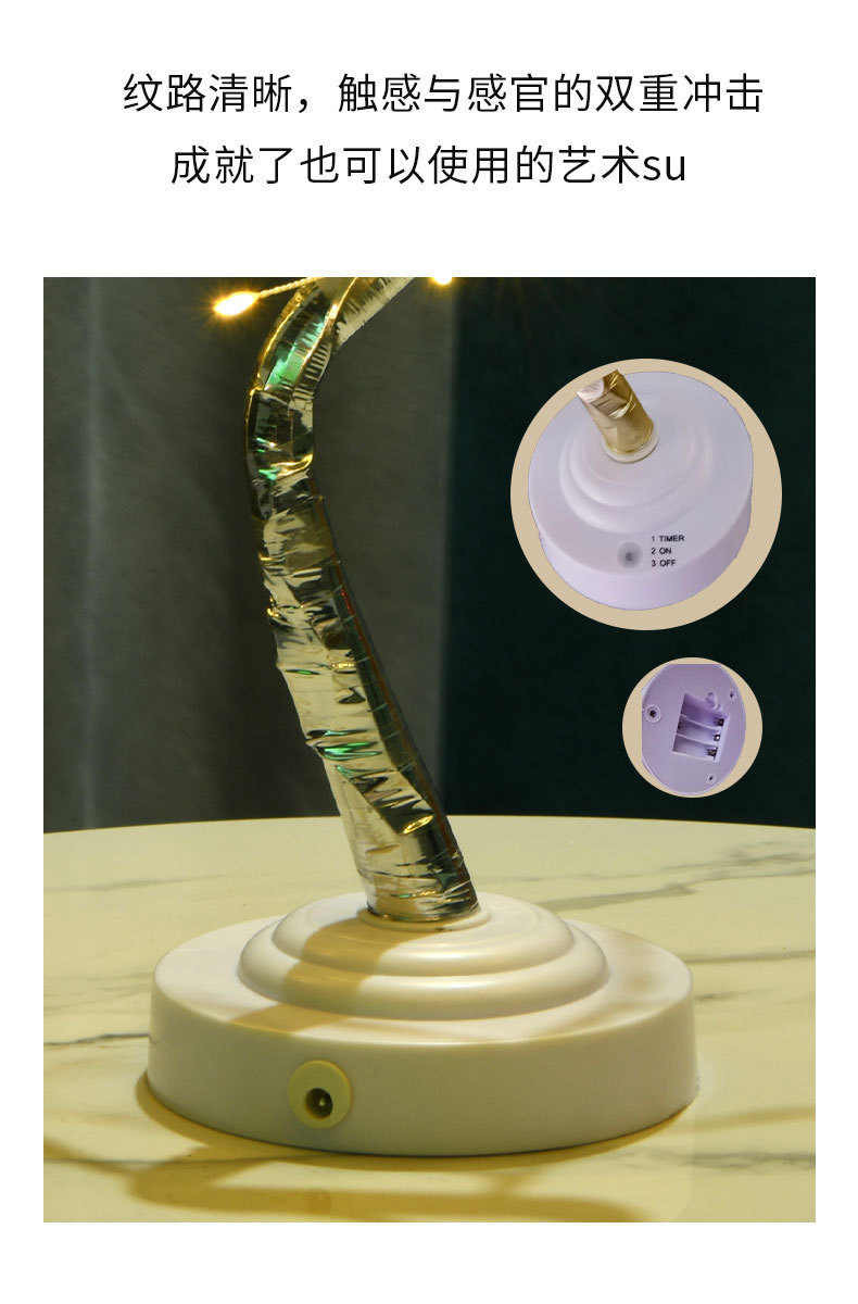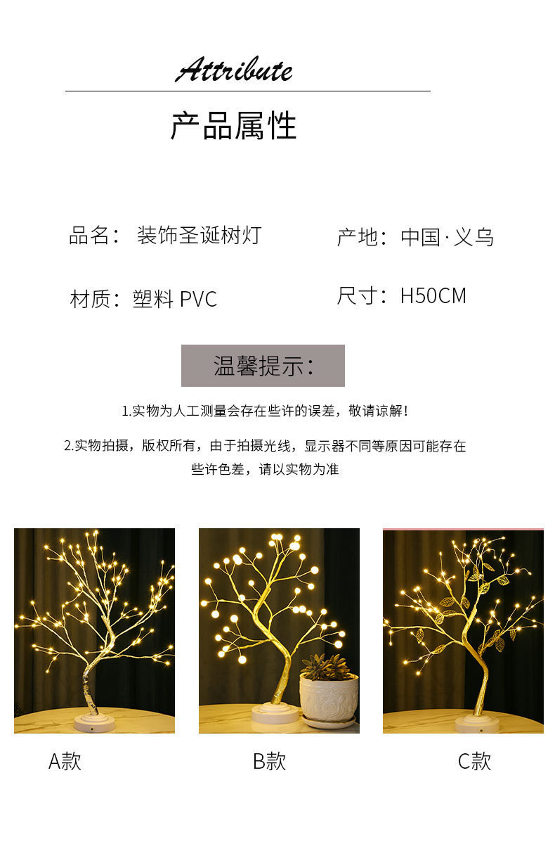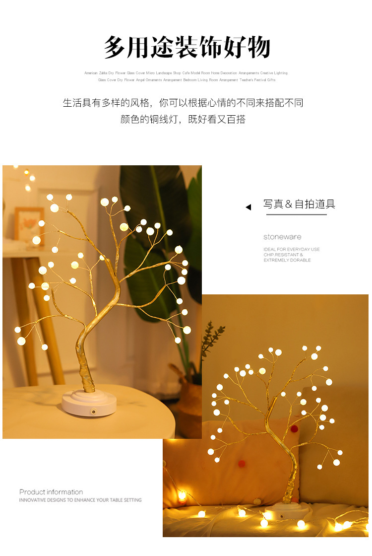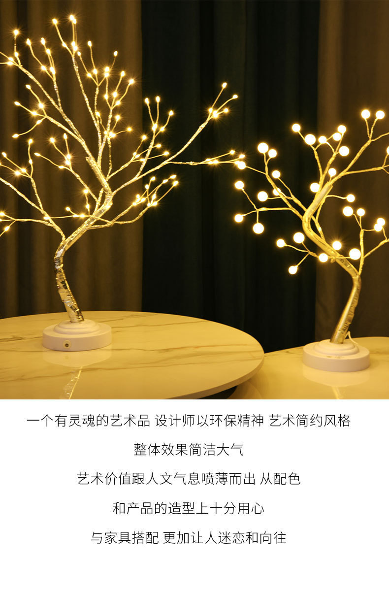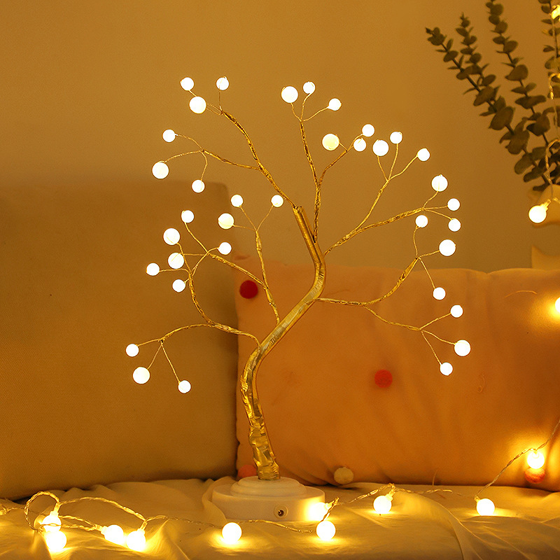 Kotak baterai USB lampu pohon emas mutiara, lampu malam USB LED kotak baterai