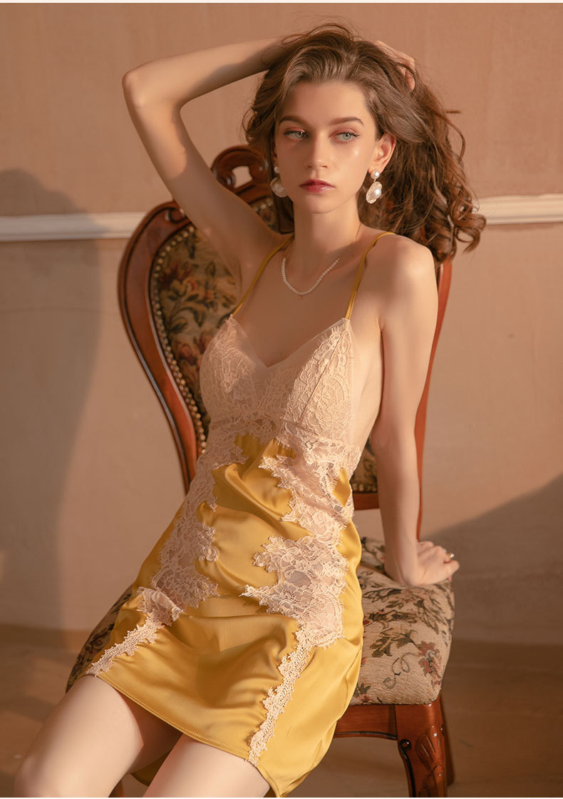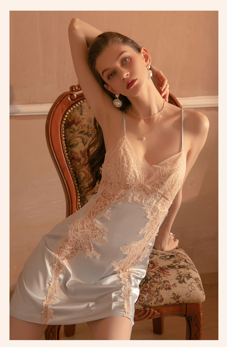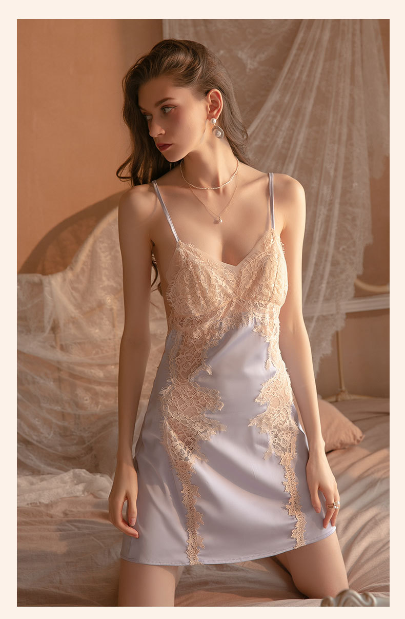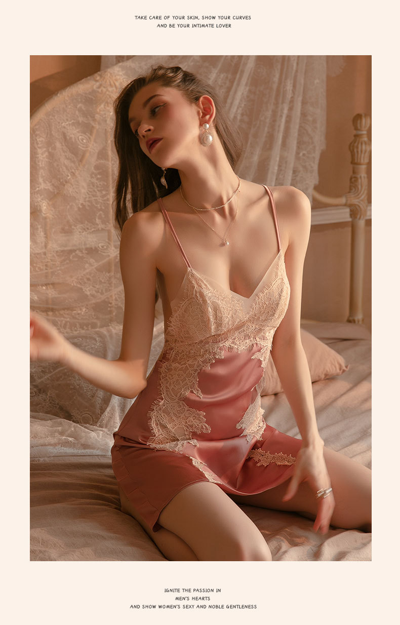 Duma piyama tipis baru pakaian tidur seksi bertali baju tidur sutra es bantalan dada berlubang lucu jaring renda tipis 29