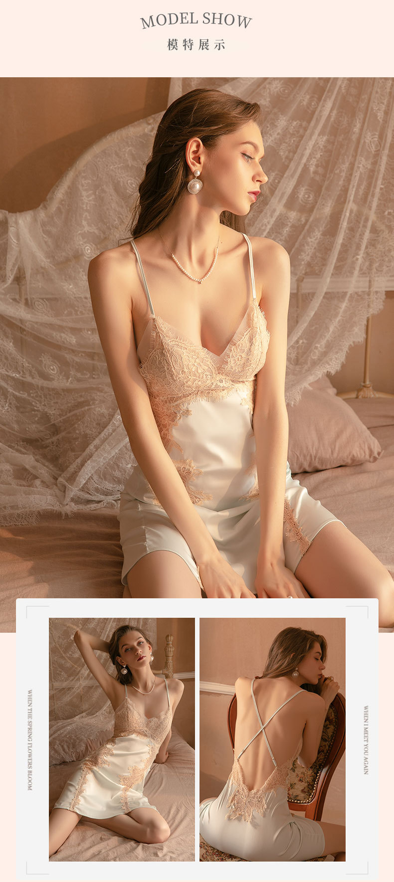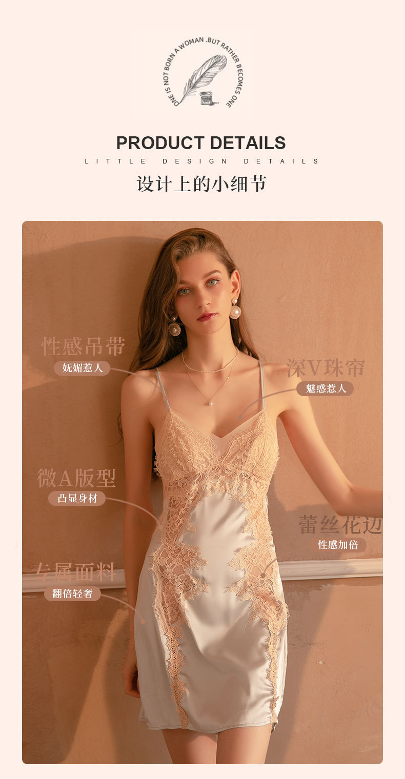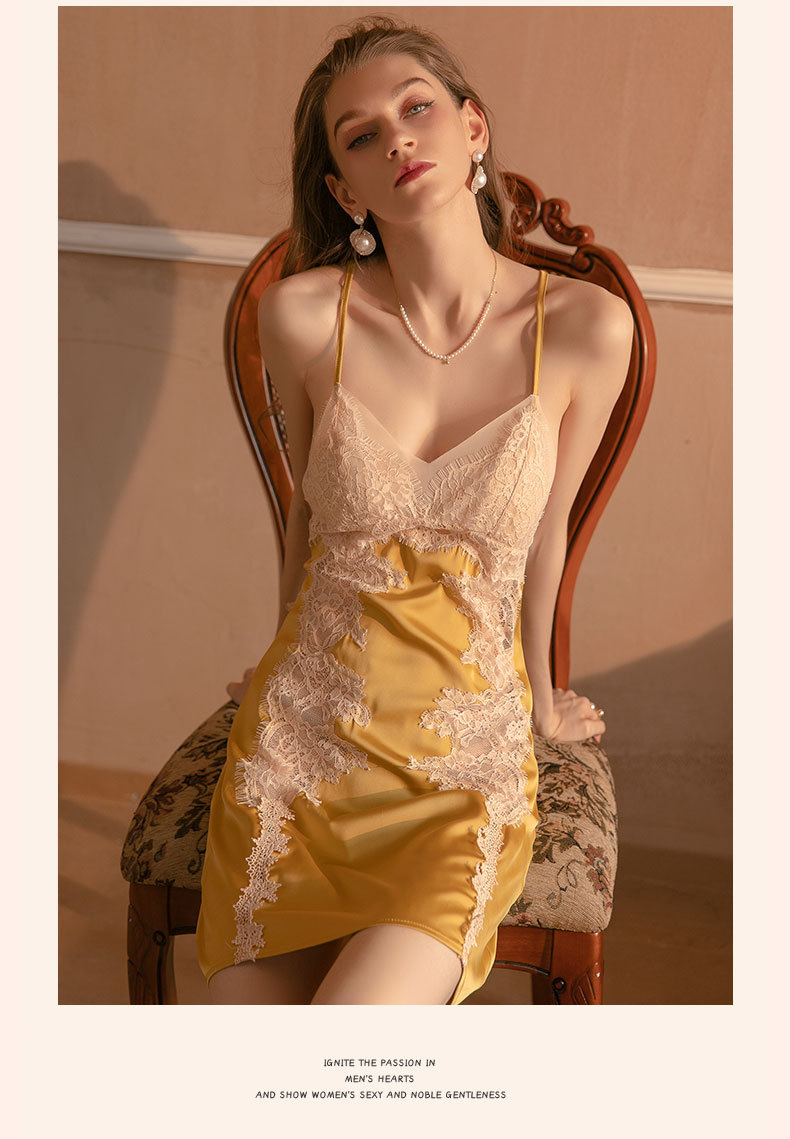 Duma piyama tipis baru pakaian tidur seksi bertali baju tidur sutra es bantalan dada berlubang lucu jaring renda tipis 29
