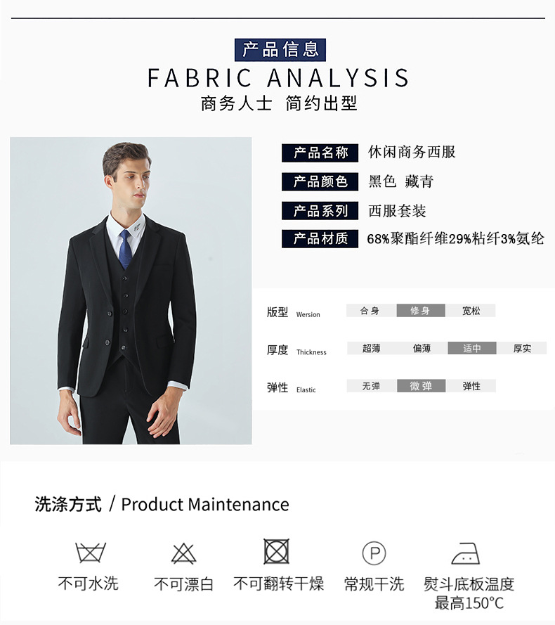 男士西装黑色外套修身职业装办公室西服套装伴郎服政府国企工作服