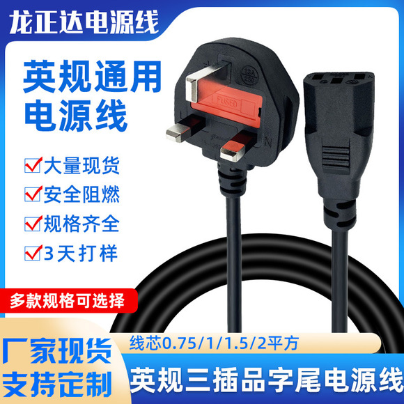 小英式英国电源线品字尾 小英标电脑插头线 三芯品字尾英规电源线