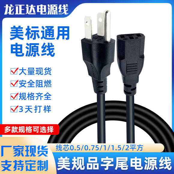 龙达品字尾头线 连接电脑主机延长线 三插电源线三芯国标电源线
