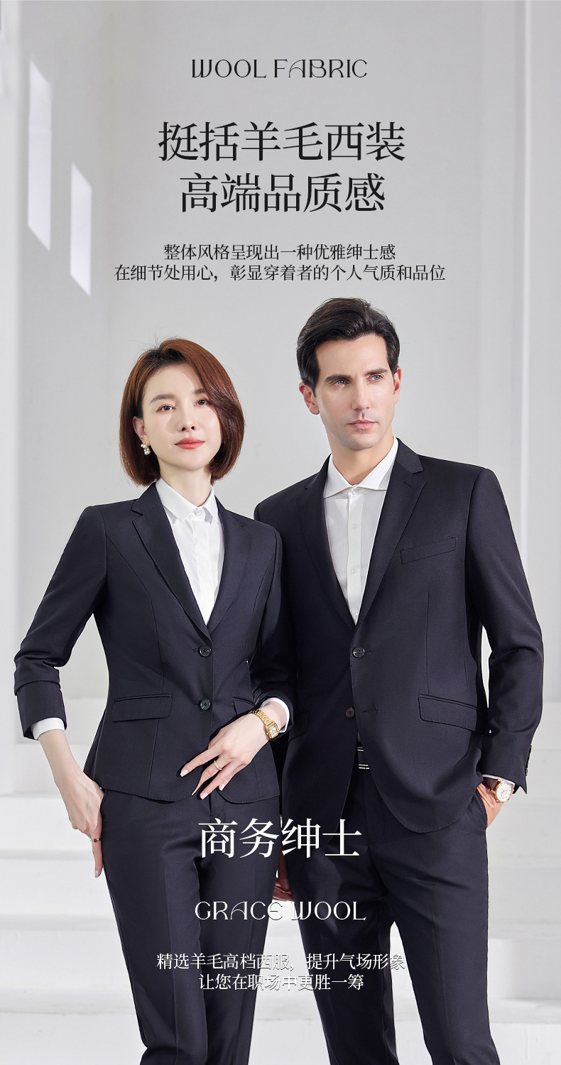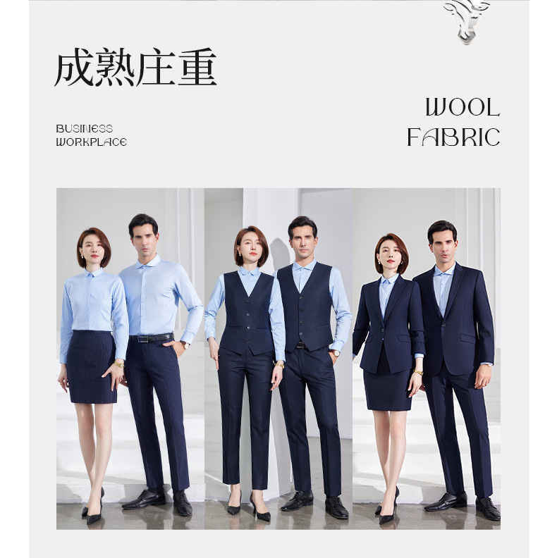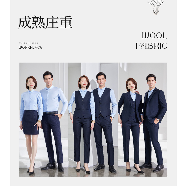 Setelan wol anti kusut untuk pria dan wanita, pakaian profesional, pakaian formal untuk lembaga pemerintah, perusahaan, dan bisnis.