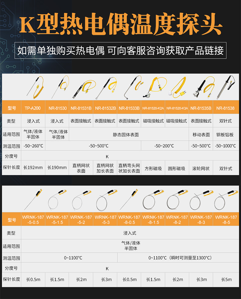 Termometer kontak presisi tinggi, pendeteksi industri permukaan cair termokopel tipe-k