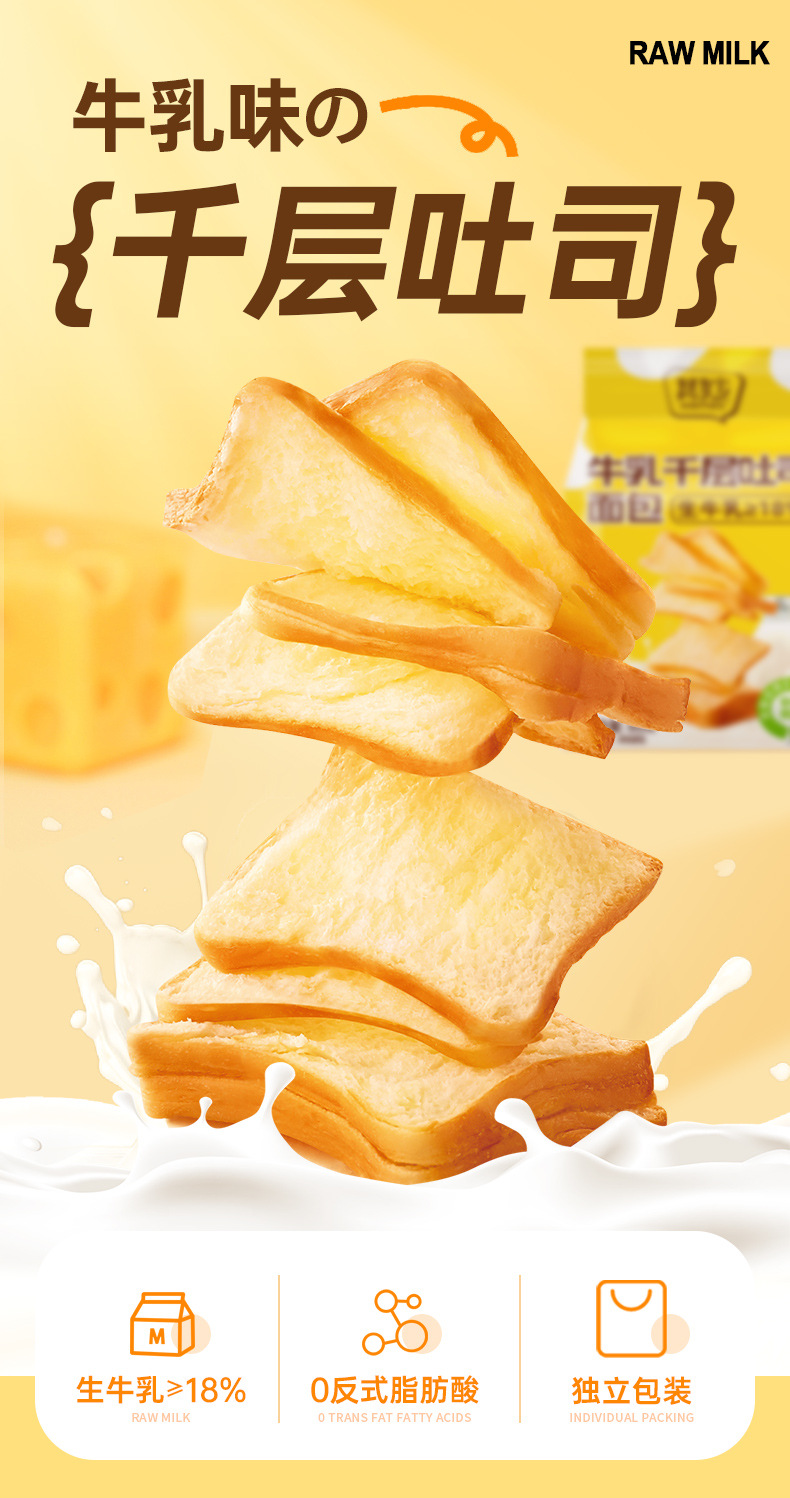 Roti Panggang Rubik's Cube Susu Seribu Lapis Lembut, Irisan Tangan, Sarapan, Kotak Utuh, Makanan Sehat, Camilan Bergizi, Grosir