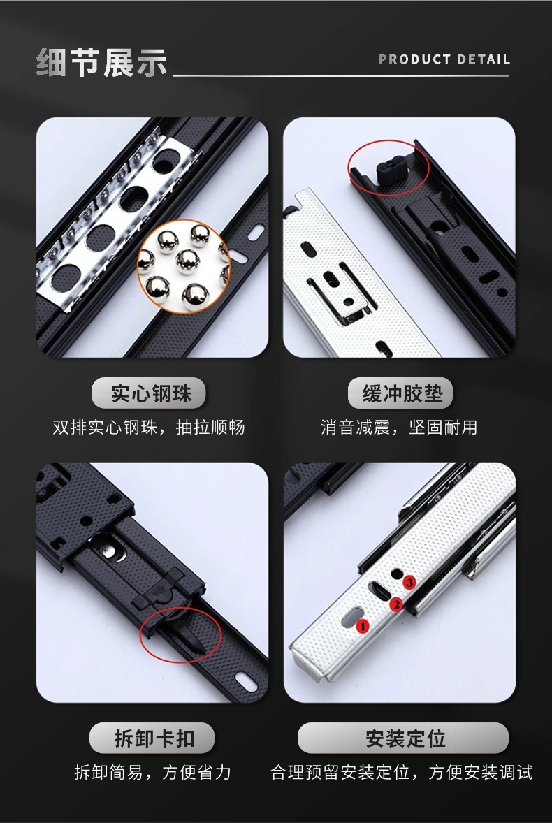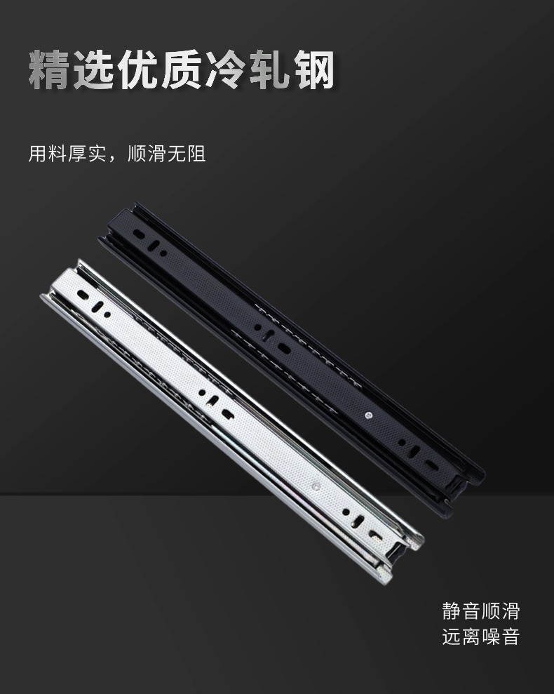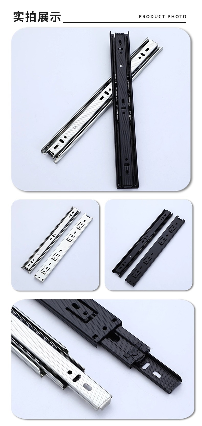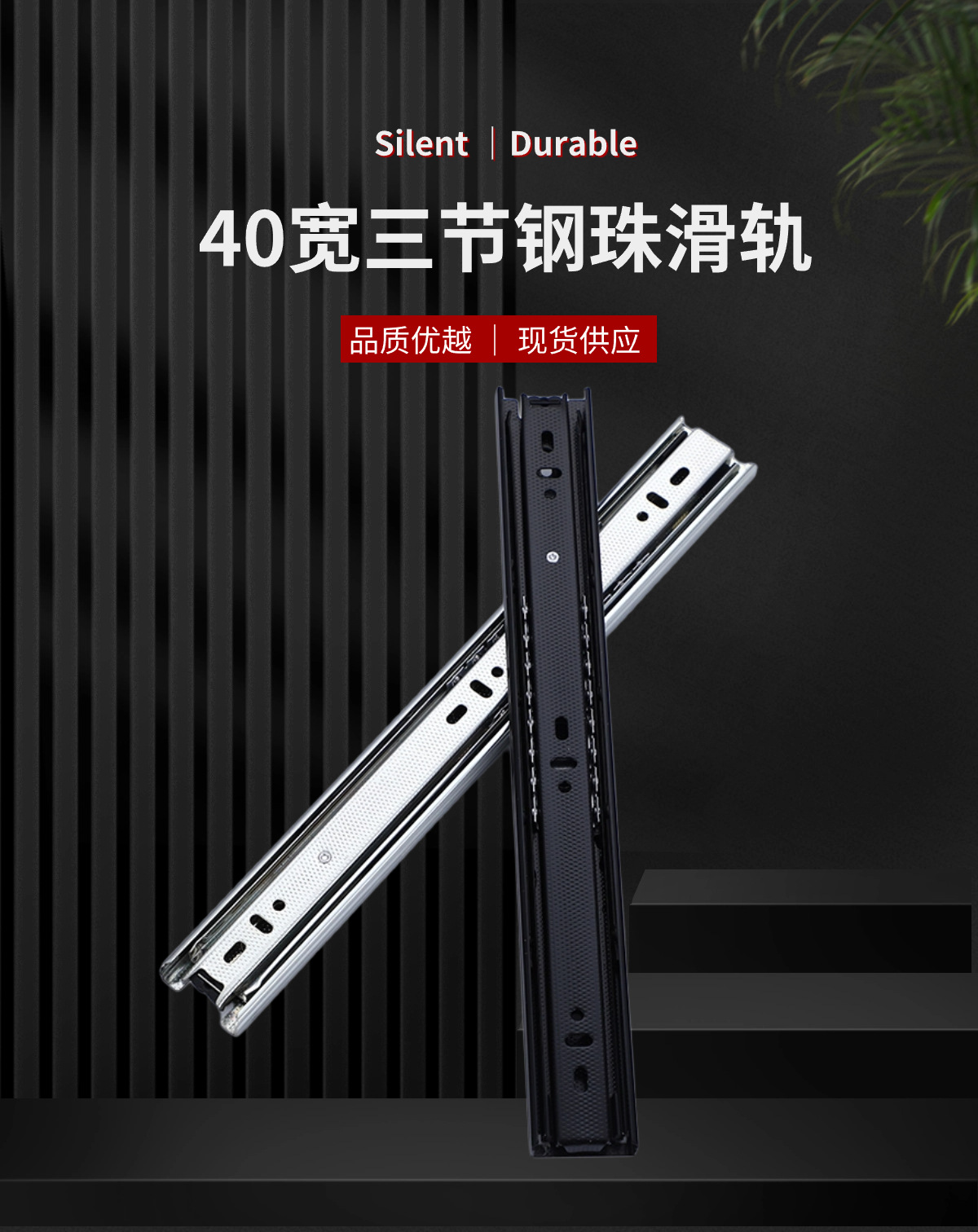 Aksesoris perangkat keras lebar 40mm untuk lemari furnitur kantor, rel laci tiga bagian dengan bantalan bola, rel pemandu baja tiga lipatan, roda senyap