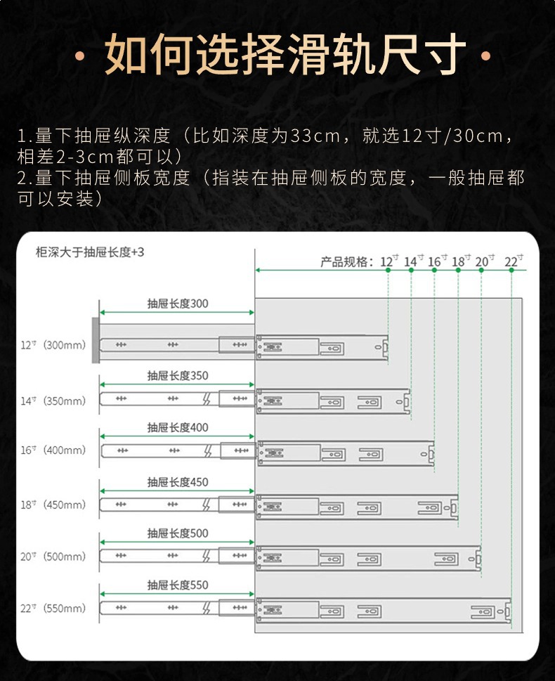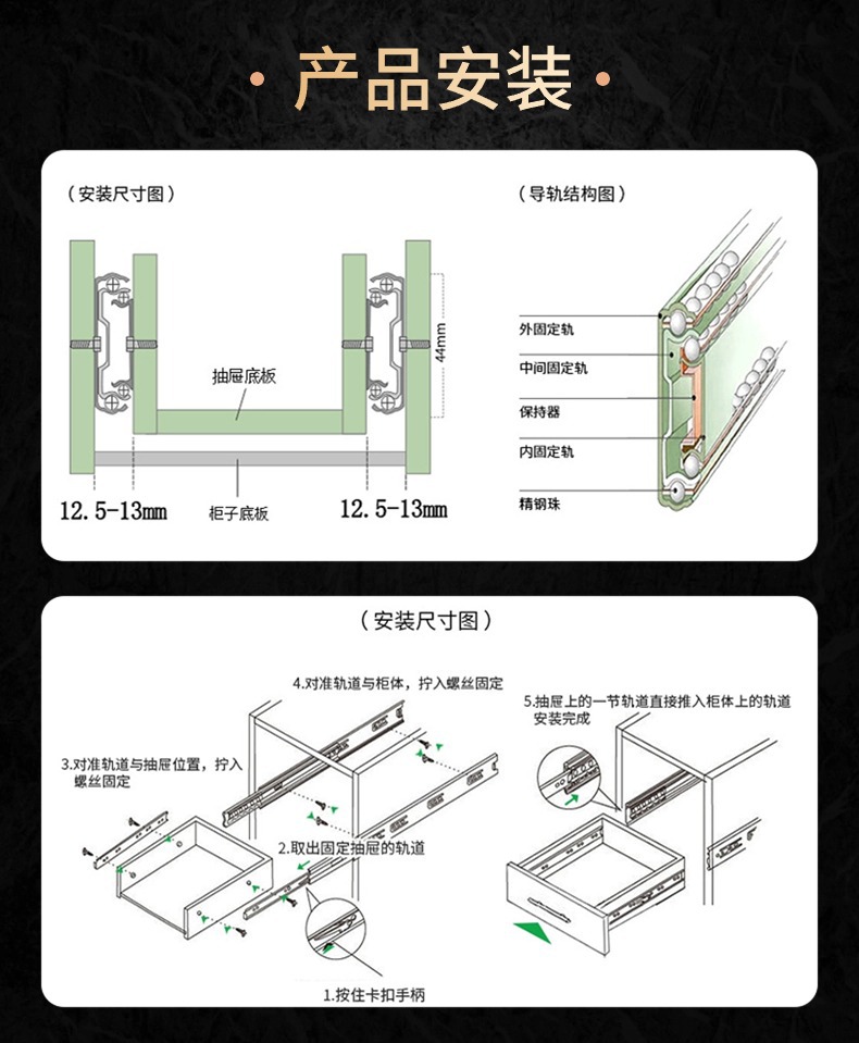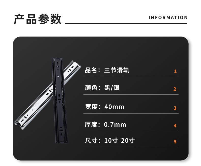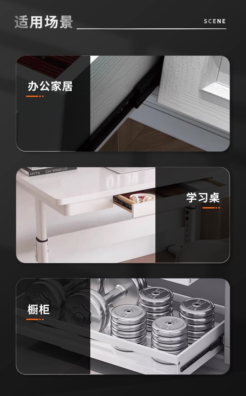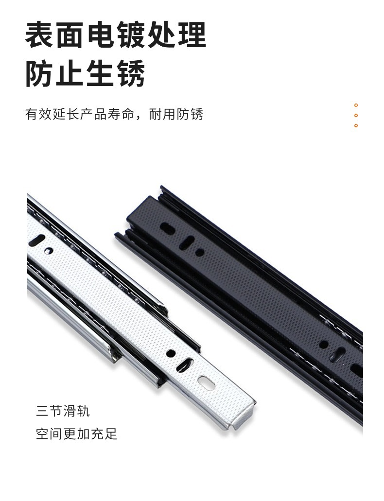 Aksesoris perangkat keras lebar 40mm untuk lemari furnitur kantor, rel laci tiga bagian dengan bantalan bola, rel pemandu baja tiga lipatan, roda senyap